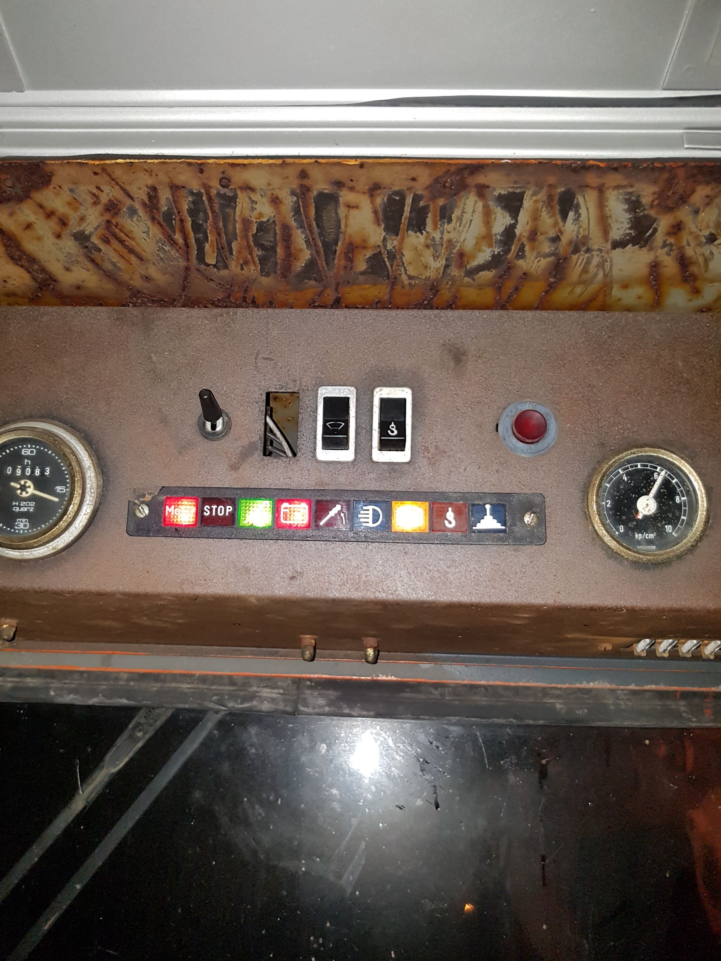 Die blaue Leuchte ist für den Vorsteuerdruck. Wenn dieser zu niedrig ist, geht die Lampe ein.