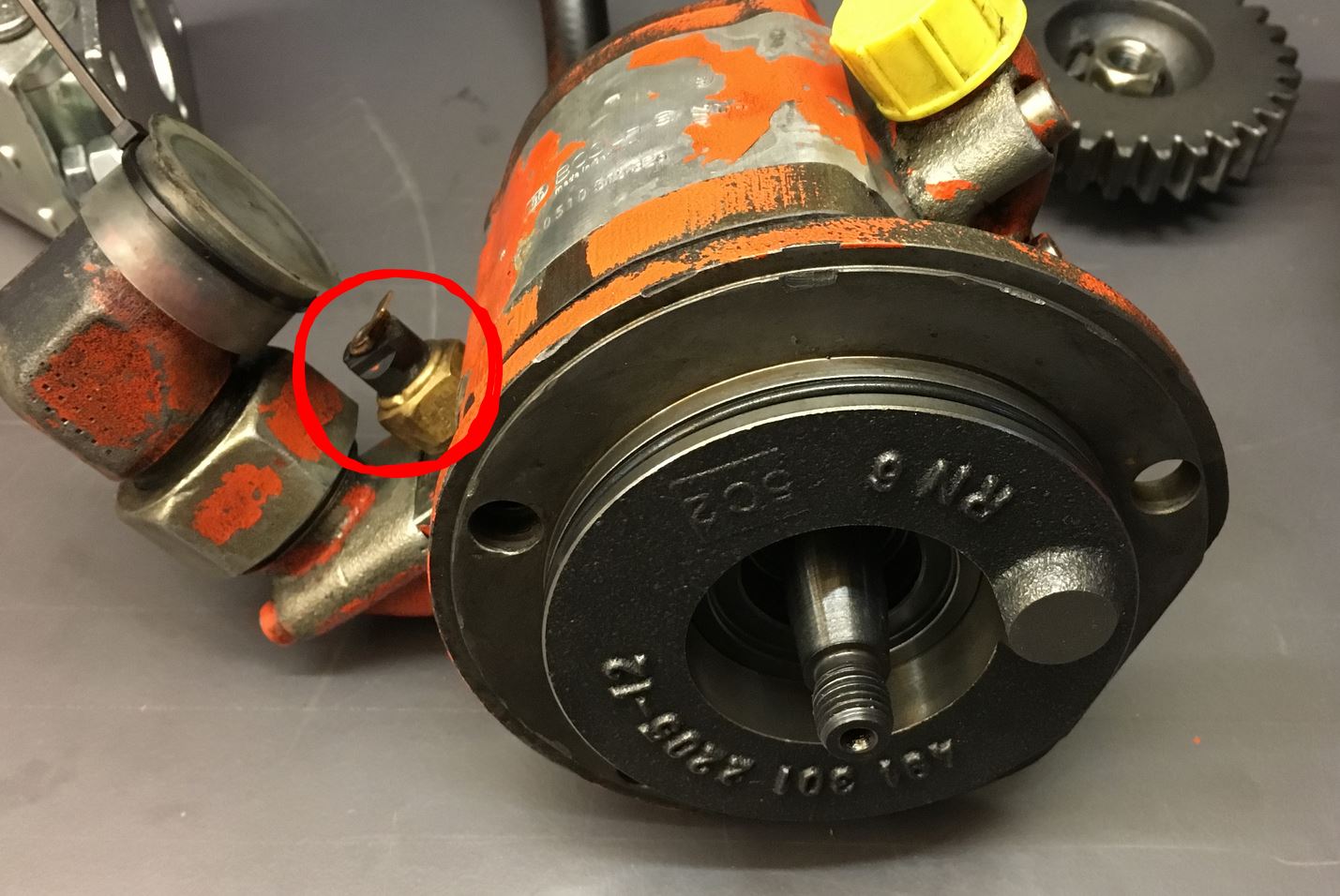 der Temperatursensor sitzt in der kleinen Zahnradpumpe, welche auf die große Doppelpumpe aufgesattelt ist.