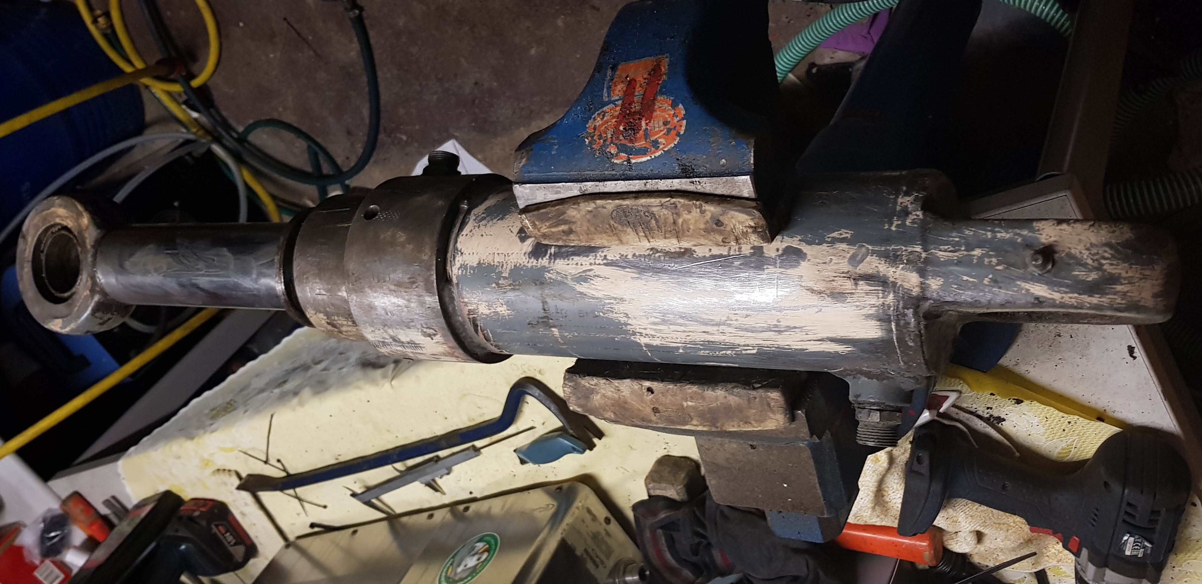 Ich würd mir so nen kleinen Druckluftschleifer mit kleiner Trennscheibe besorgen und es vorsichtig probieren zum auftrennen. Ich bin gespannt, was Dich innen erwartet. Wollte damals meine Planierschildzylinder auch abdichten. Da war innen die ganze Kolbenstange verschweißt