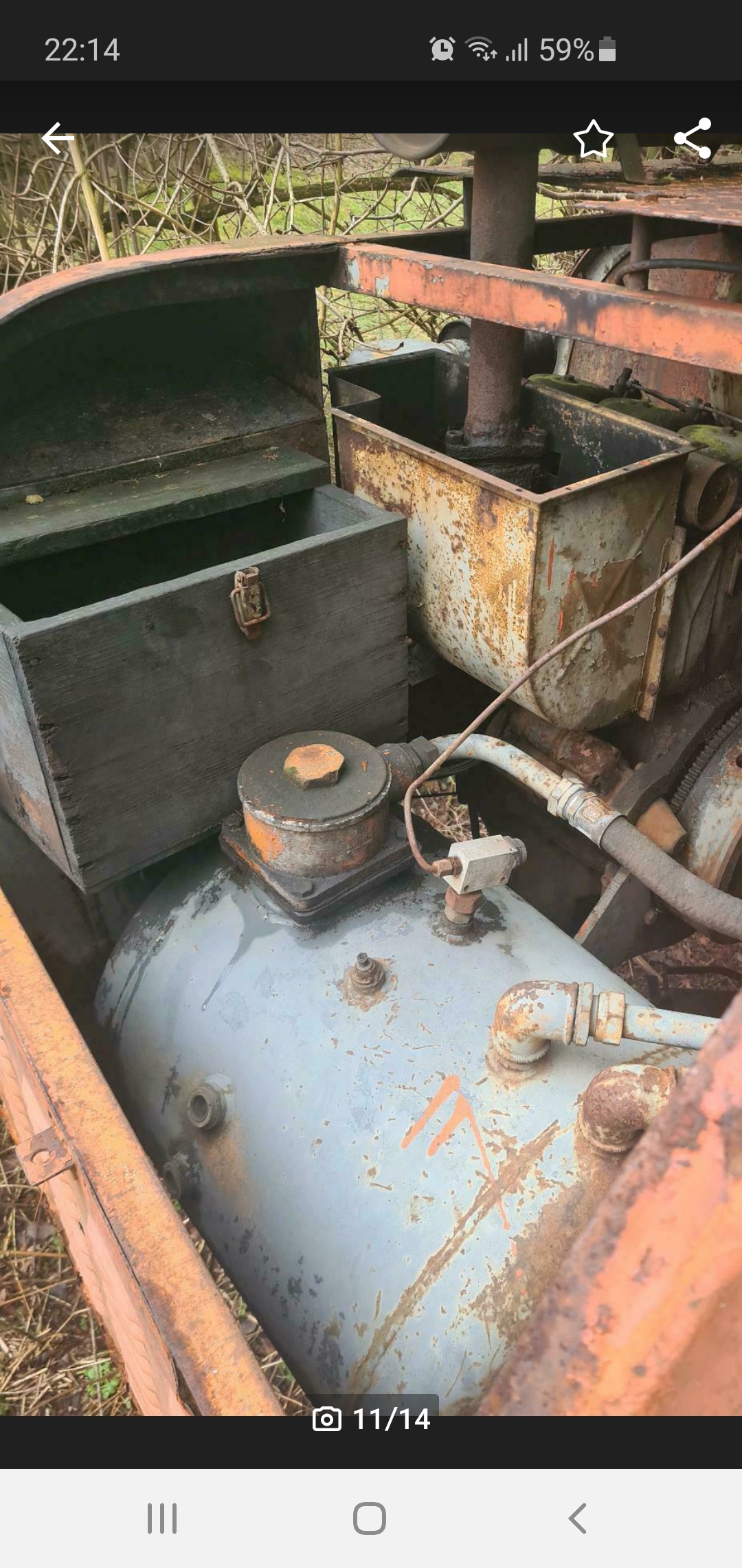 Moin,die Kiste hat wohl ein Baggerführer für Bordwerkzeug und Kleinteile gebaut.Der Kasten um den Krümmer gehört zur Heizung.War bei mir oben geschlossen und ein Warmluftschlauch führte zur Kabine.