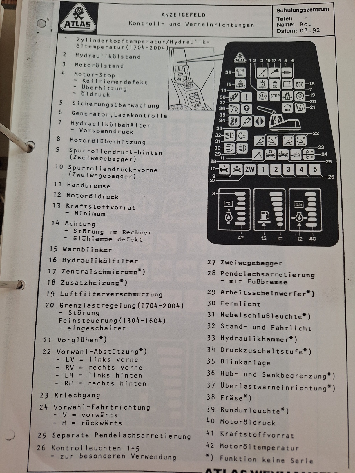 Kannst Du mal ein Bild von der rechten Konsole einstellen. Ich hab mal ein Bild von der Ausführung der ersten Generation mit angehängt. Der Kriechgangschalter ist da eigentlich im Fahrtrichtungsschalter am Lenkrad links integriert. Der Gangschalter in der rechten Konsole (Schalter Nr 7). Bei den kleineren Baggern war der Umschalter links, wo bei Dir die Verschlusskappe drauf ist und mit Luft gesteuert.