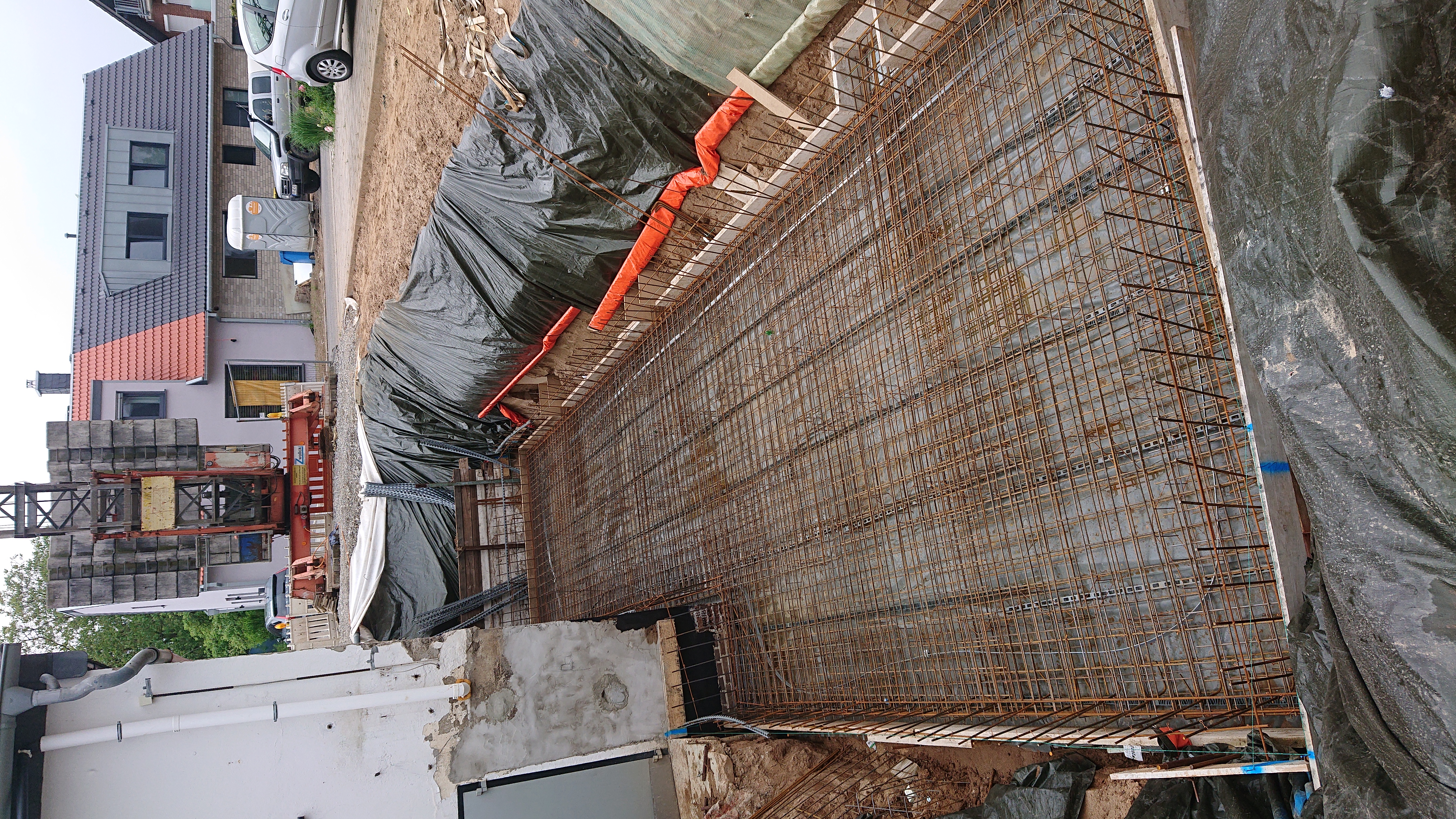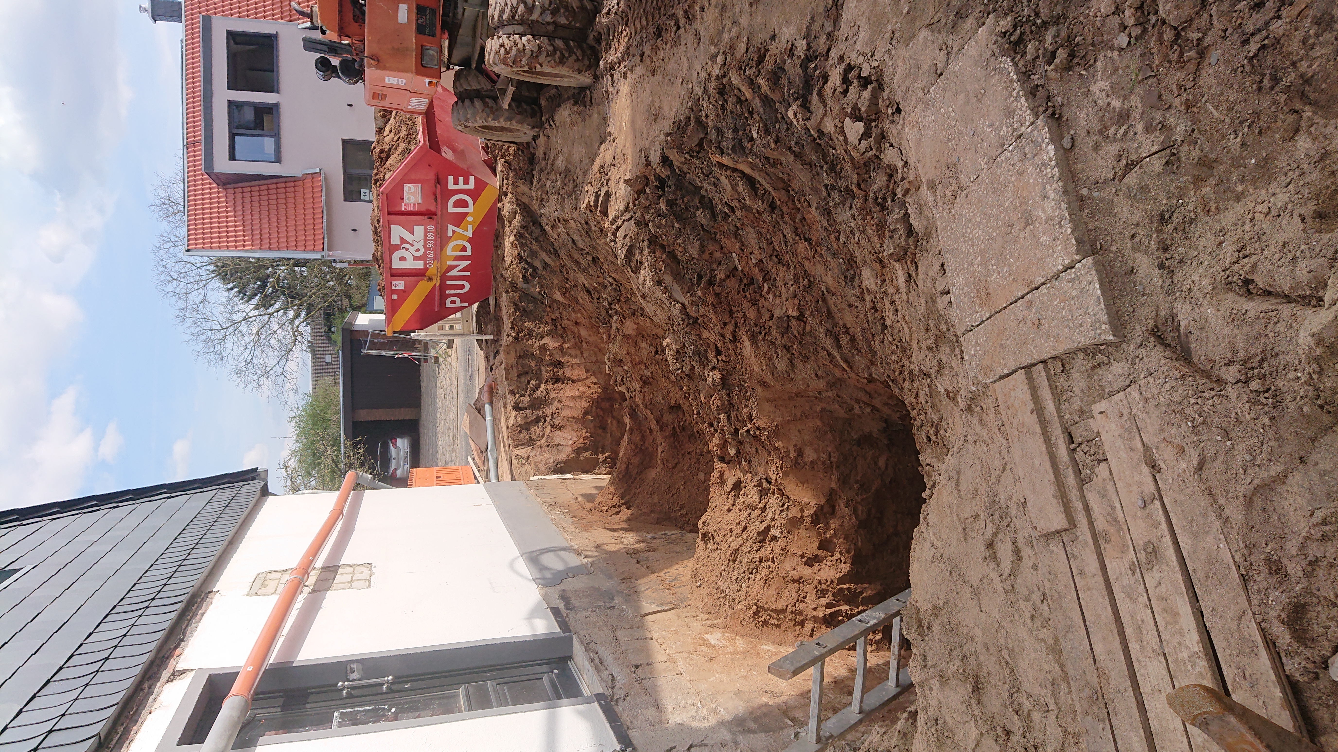 Da der Keller des Anbaus tiefer sein wird wie der des Bestandes, musste vor dem eigentlichen Aushub das Fundament schrittweise unterfangen werden.