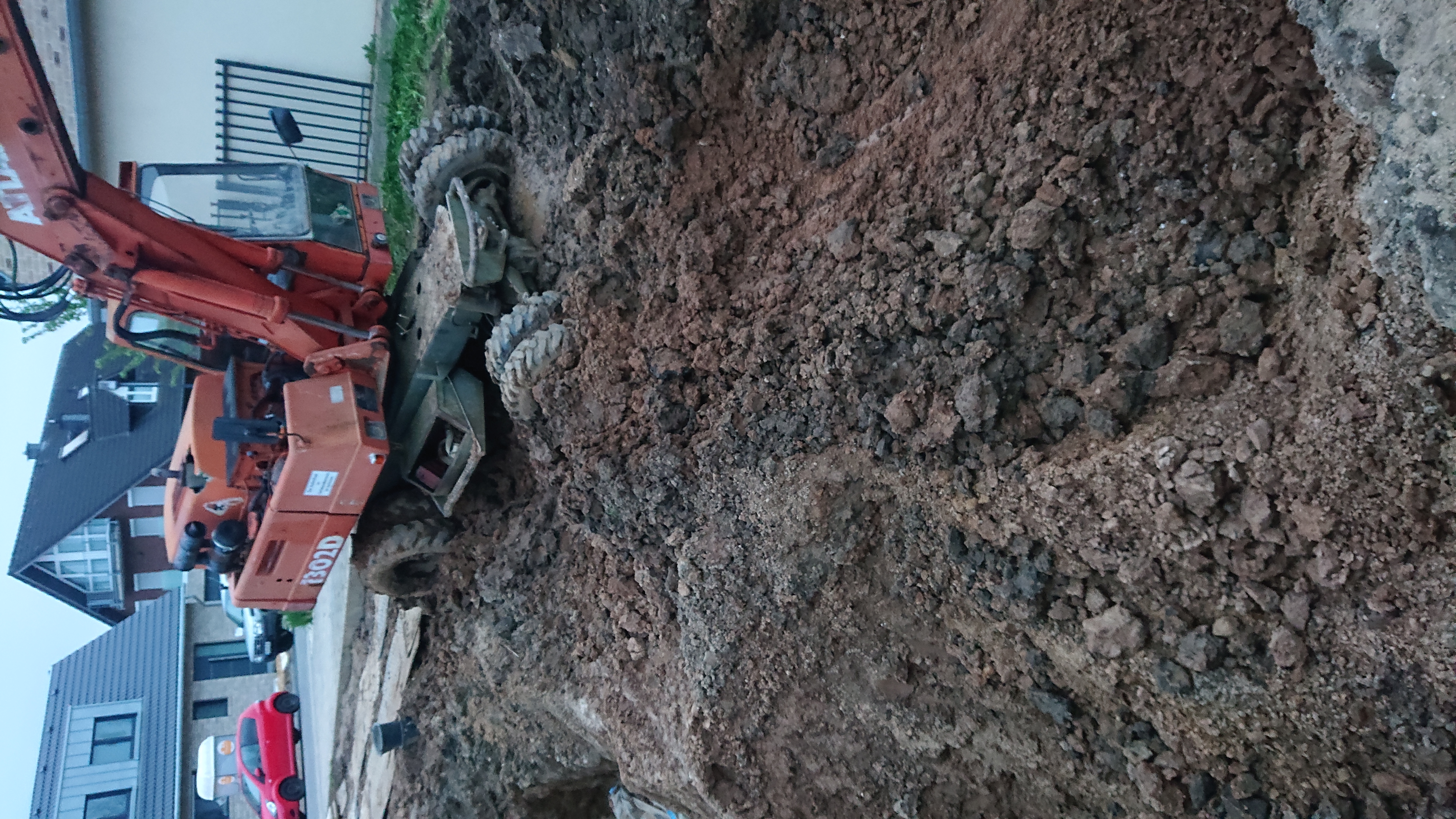 Da ich die Möglichkeit hatte den Aushub kostenlos los zu werden, der Platz aber auf abgeschlossenem Betriebsgelände lag, kam auch kein Unternehmer zum Abfahren in Frage.