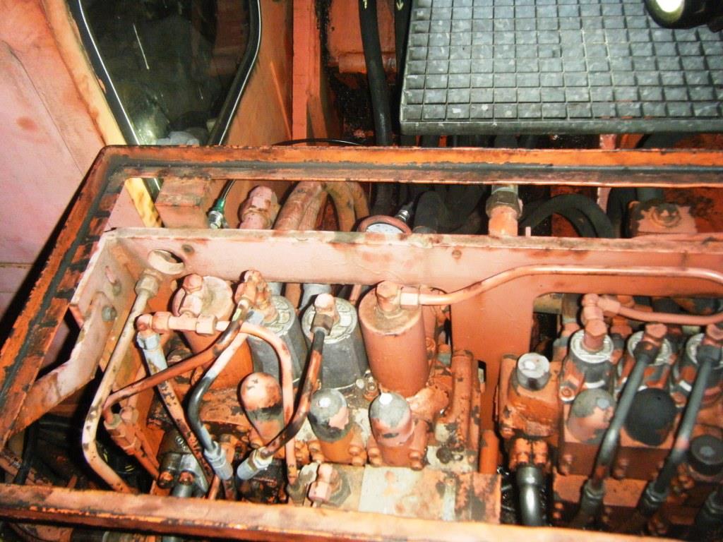 Die Hebefunktion ist am rechten Steuerblock (wenn Du von hinten darauf siehst). An diesem geht seitlich ein Hauptdruckschlauch darauf und dort ist ein Prüfanschluß verbaut.