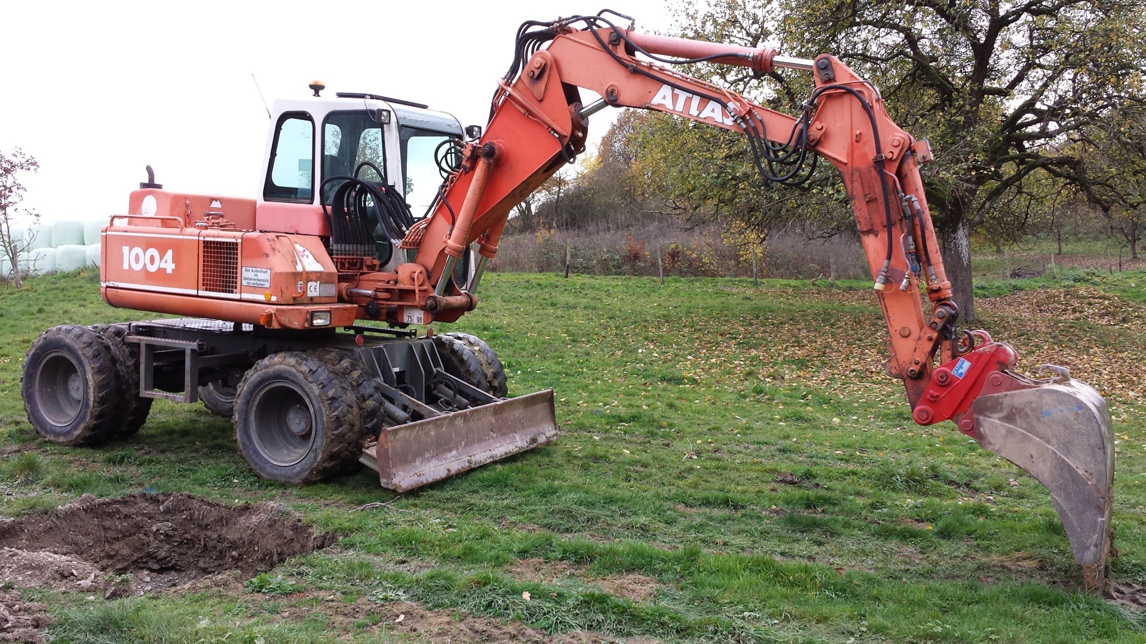 Ich habe mir gerade gemeinsam mit meinem Vater für den landwirtschaftlichen Gebrauch einen eigenen Bagger zugelegt. Es ist ein Atlas 1602D LC - Baujahr 80 - mit 2m hydraulischem Grabenräumer und 90er Laufwerk geworden.