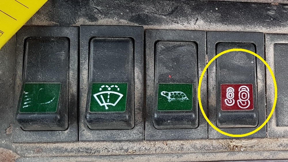 Rausbekommen habe ich, dass sie sofort leuchtet, wenn man einen bestimmten Schalter rechts vom Sitz drückt. Allerdings befriedigt mich diese Antwort nicht, denn das aufgedruckte Symbol lässt auf die Überlastwarnung schließen. Die wird jedoch eigentlich am Dach eingeschaltet und ist bei mir auch am Dach vorhanden.