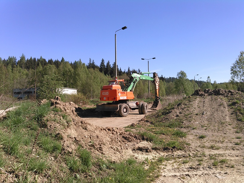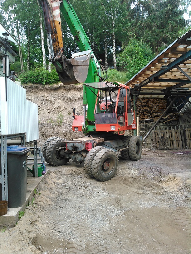 Leichter erdaushub vor dem hof pflastern und 7 m3 bauchschutt in eine container kippen also nicht der rede wert.zum unter dem carport baggern war er um einiges zu gross also war wie immer handarbeit gefragt.und zum schluss hat der atlas noch seine fussspuren auf dem neuen pflaster hinterlassen ich frag mich wer da drüber gefahren ist.