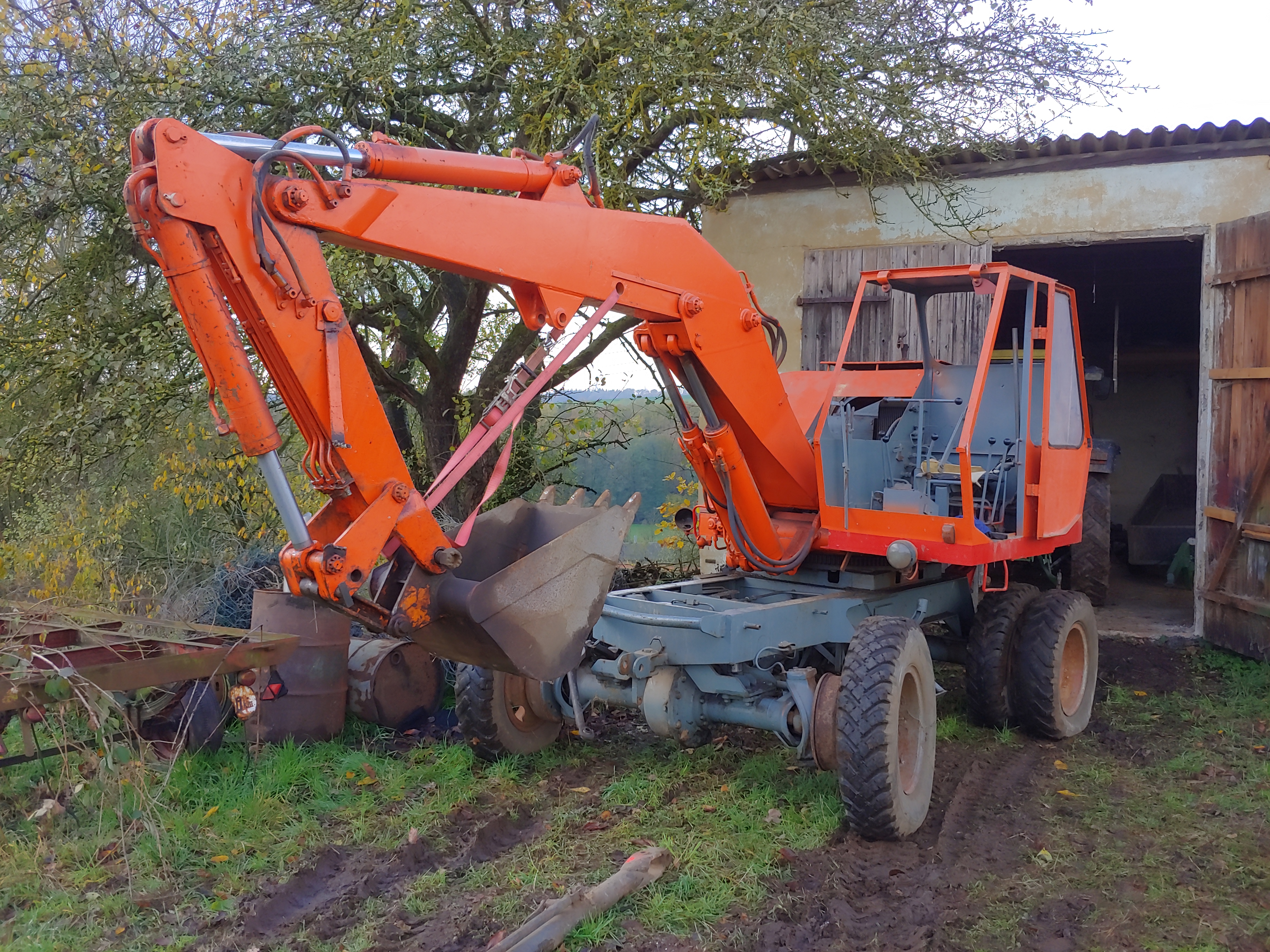 Hallo, habe vor ein paar Wochen einen Atlas in einer alten Feldscheune ganz in der Nähe angeboten bekommen. Mein Vater und ich haben bereits seit 20 Jahren einen AB1200 im Einsatz. Nun kommt der AB1300 dazu. der 1300er stand jetzt 20 Jahre, gestern wurde geprüft ob der Motor dreht, dreht und sprang sogar an. Morgen kommt frisches Hydrauliköl rein. Motoröl wurde auch schon gewechselt. Muss noch aus der Scheune geborgen werden. Mal schauen was die Begutachtungen in der heimischen Werkstatt alles aufdecken. War supergünstig und wird im Extremfall für unseren 1200er als Ersatzteilspender dienen. Es waren drei originale Löffel dabei, sogar der schmale mit hydraulischem Auswurf.