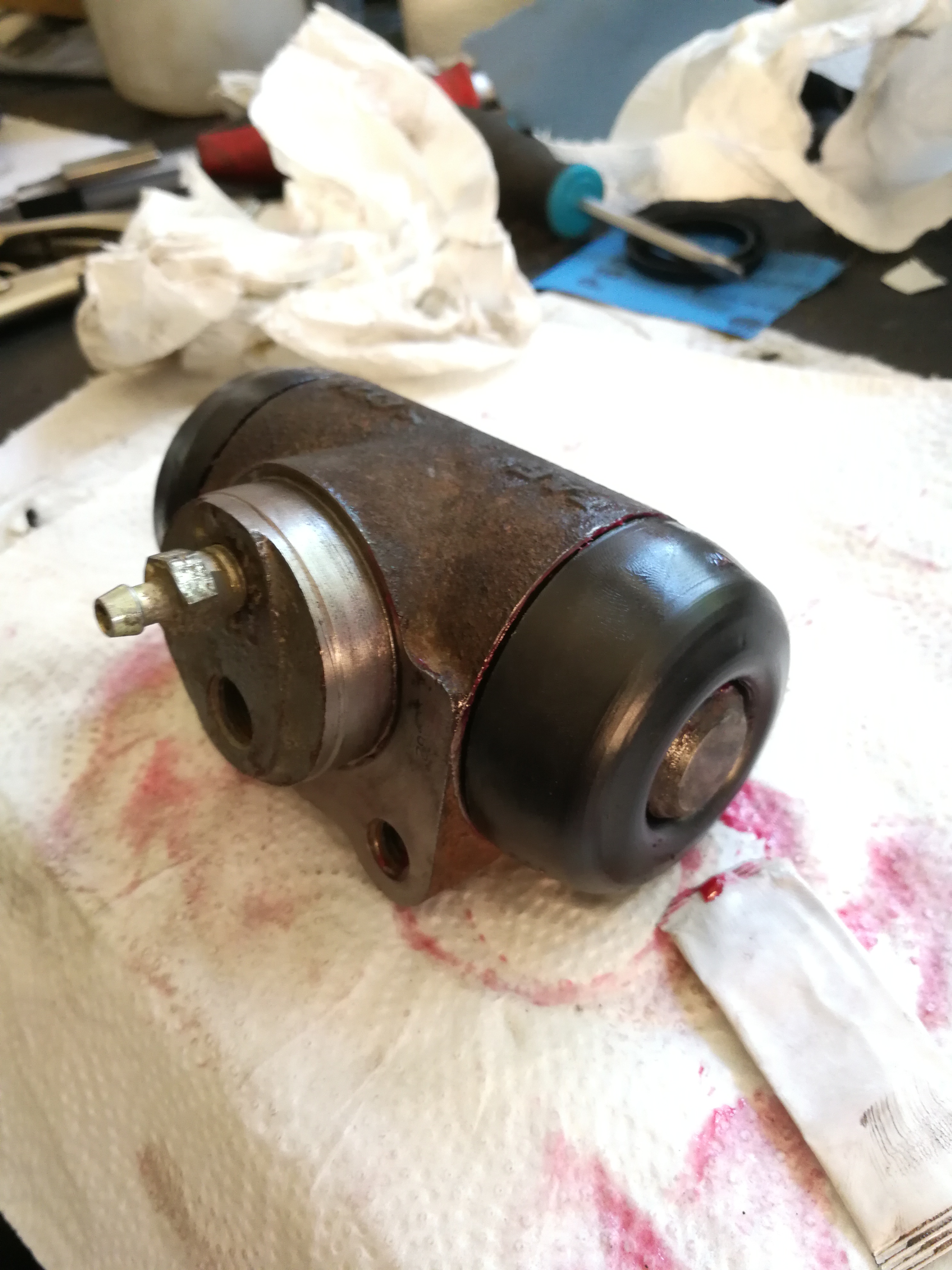 Im Moment beschäftigt mich jedoch noch etwas: An einer Bremse konnte ich schon von weitem Getriebeöl riechen. Ich bin mir nicht sicher, ob das von dem undichten Bremszylinder, oder der Achse kommt