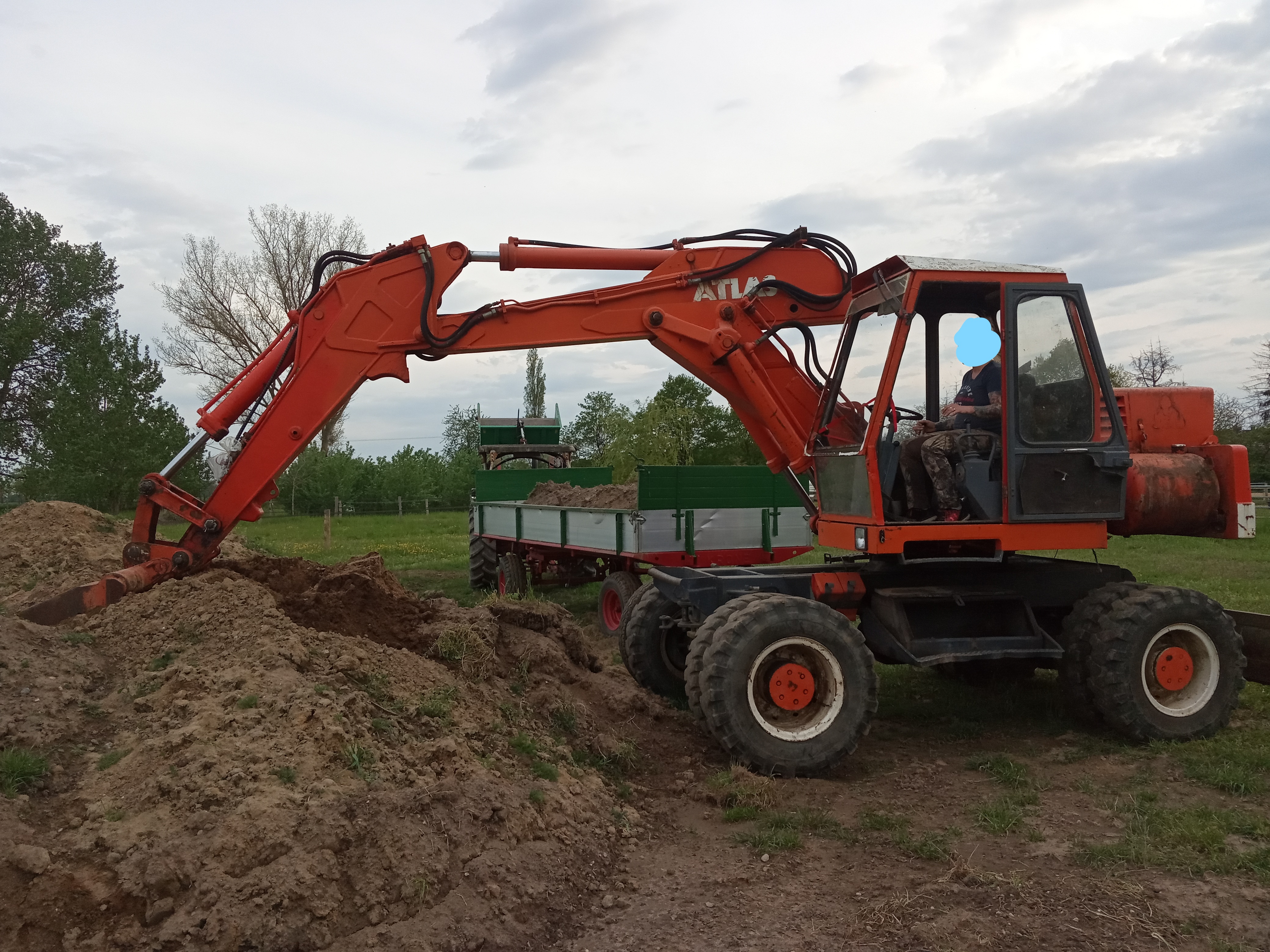 Bei dem Bagger handelt es sich um einen Atlas 1302 D. Gebaut wurde er 1977. Als Zusatz gab es noch einen Grabenlöffel sowie einen 2-Schalengreifer.