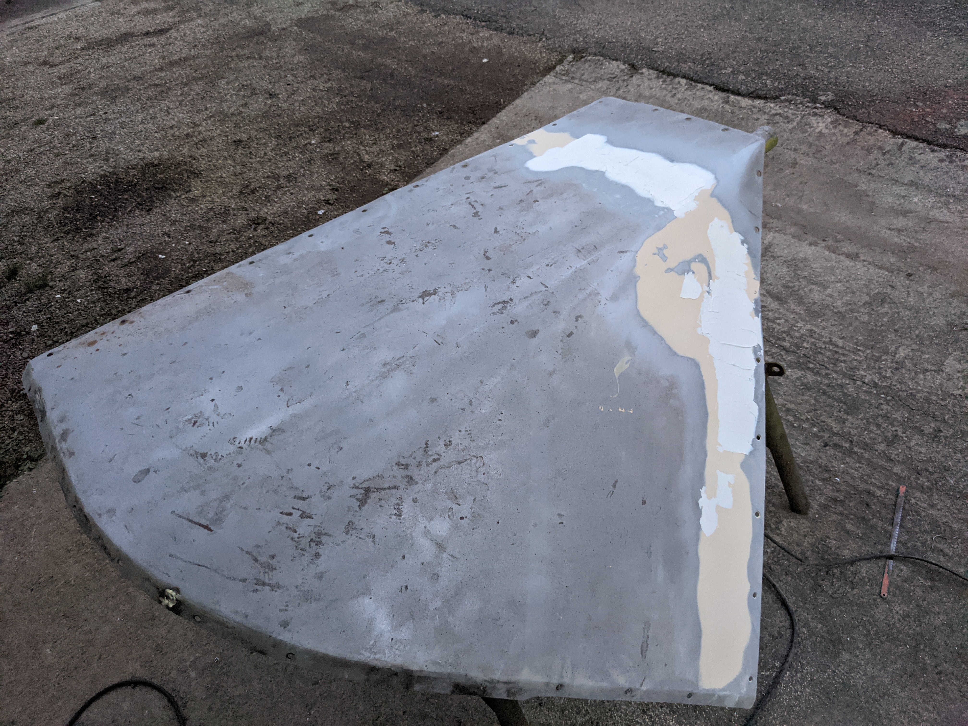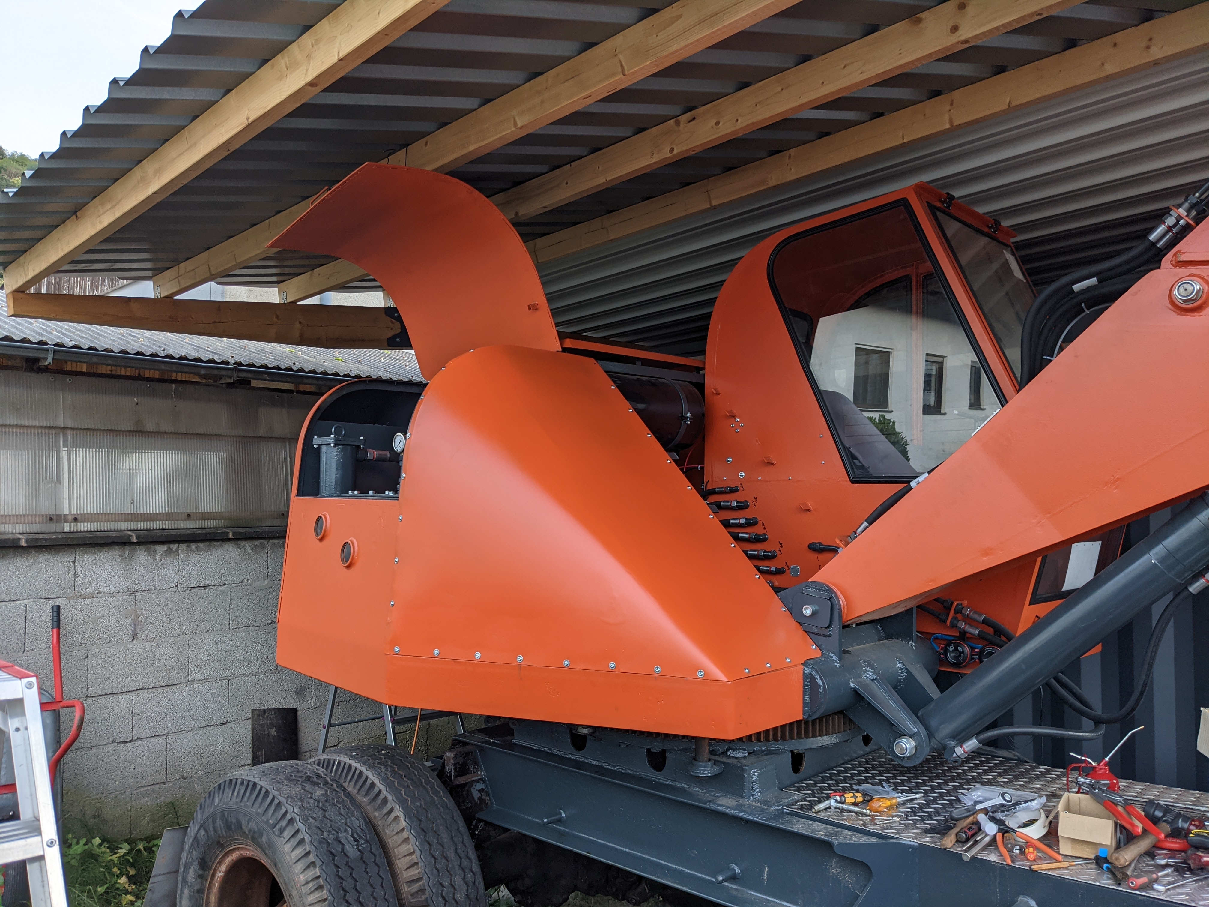 Ist nicht perfekt gespachtelt, ein Karosseriebauer würde sicher die Hände über dem Kopf zusammen schlagen, aber für einen Bagger passt das schon.