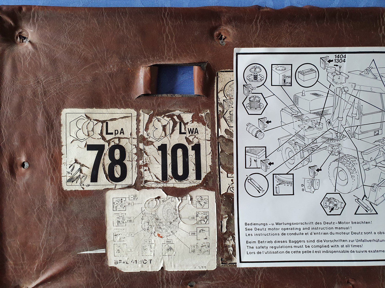 Jetzt muss ich noch irgendwie die Löcher gut in Kunstleder und Dämmmatte bekommen und dann wird das Teil wieder eingebaut. Weiß jemand zufällig welcher Aufkleber normalerweise links neben dem Motor-Wartungsplan klebt? Scheint, als wäre dort mal eine Aufkleber gewesen...
