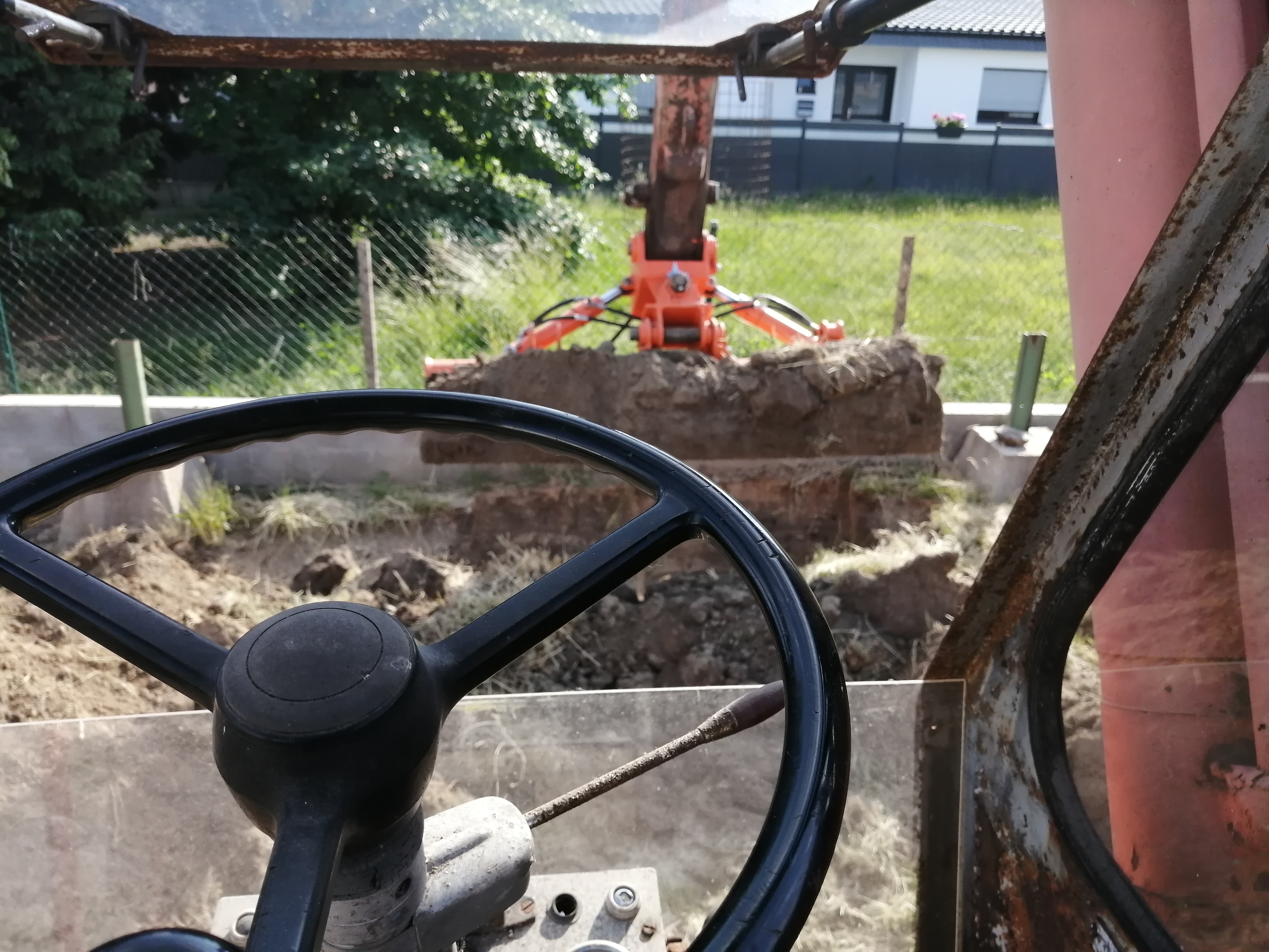 Beim Sandkastenbau für die Tochter war der Boden so hart, das ich gleich den Bagger zum Ausheben genommen hab.