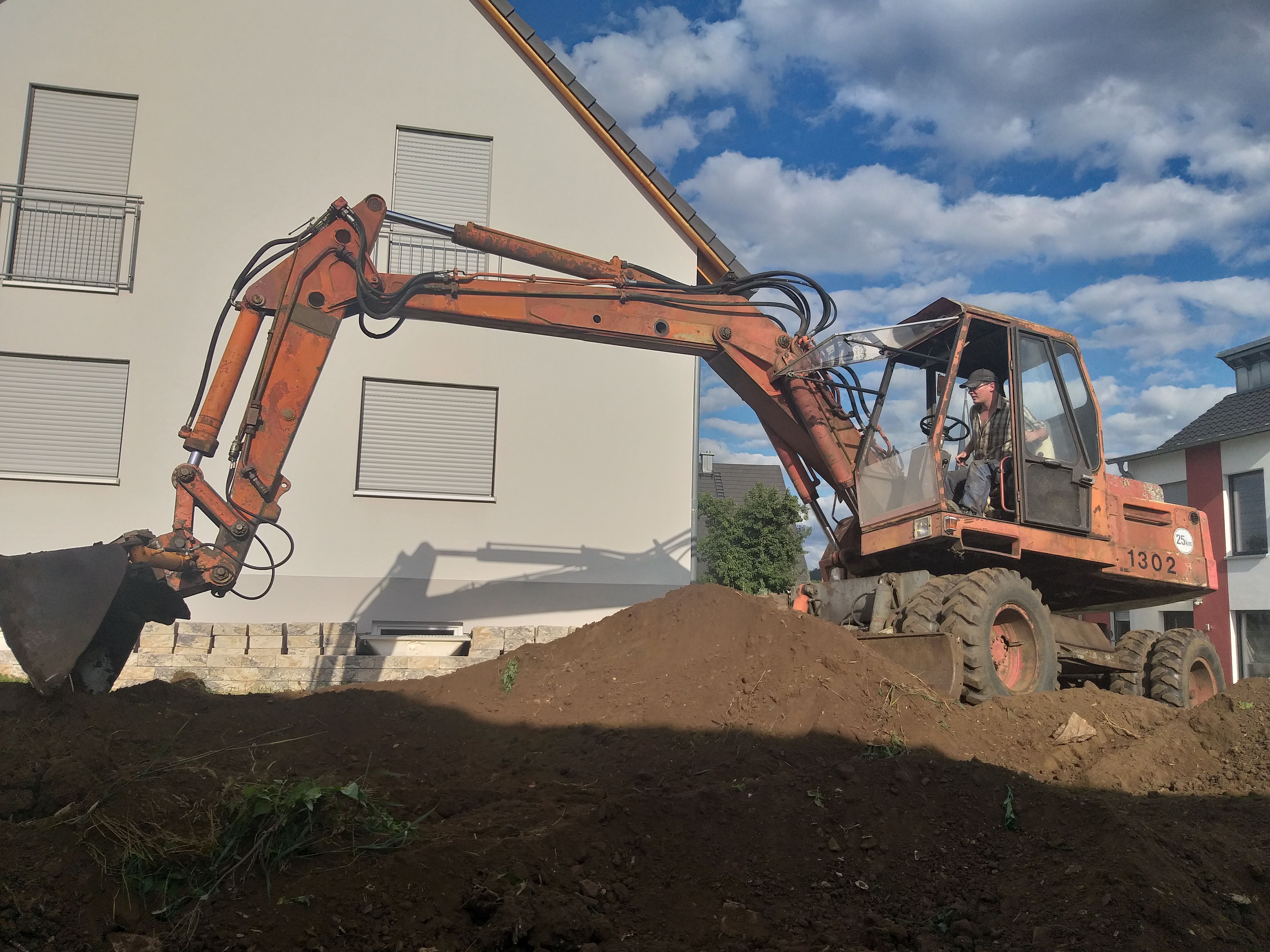 Beim Sandkastenbau für die Tochter war der Boden so hart, das ich gleich den Bagger zum Ausheben genommen hab.