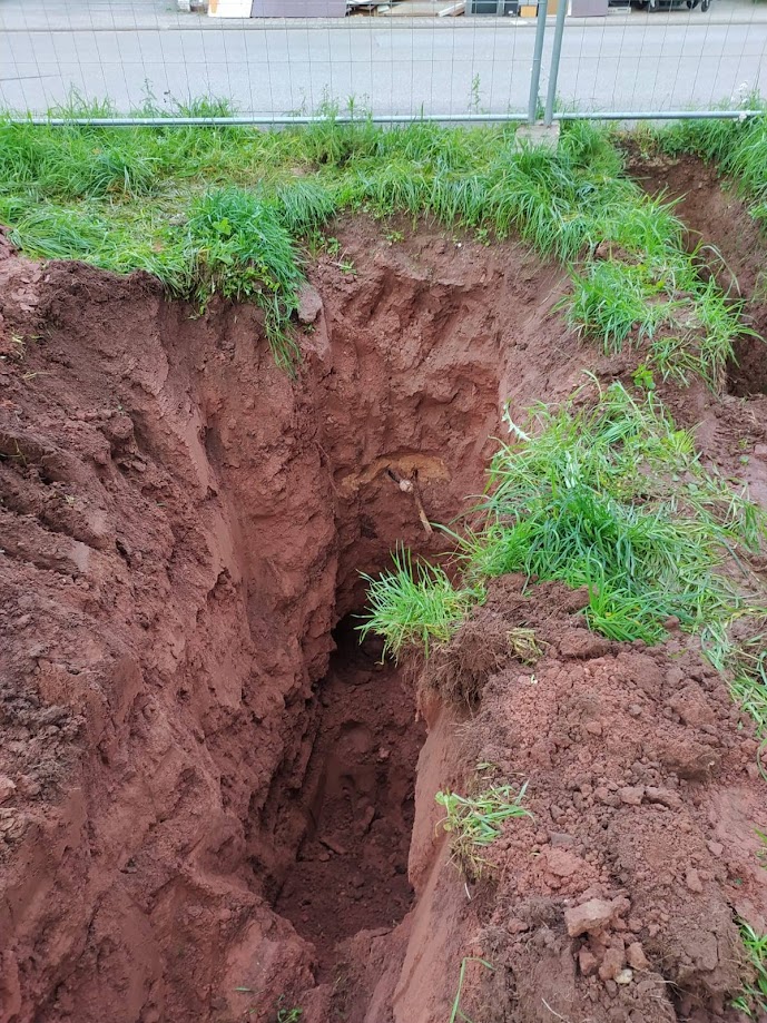 Auf einem Handy-Video zeigte er mir diesen Baggereinsatz, ich muss schon sagen, es war von der Tiefe her ein kapitales Baggerloch. Der Lochdurchmesser war dabei gerade so passend um die Schachtringe mit dem Schachtgehänge einzubringen.