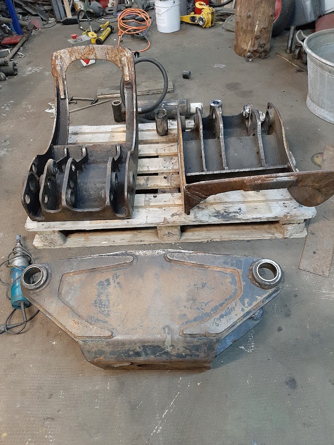 Da sich die Suche nach einem passenden Holzgreifer für meinen Bagger als schwierig gestaltet und ich außerdem langsam kein Geld mehr investieren möchte, suche ich nach einer Lösung, meinen vorhandenen Zweischalengreifer für die Waldarbeit umzubauen. Dieser hat von mir bereits neue Schläuche und einen intakten Ölmotor bekommen.