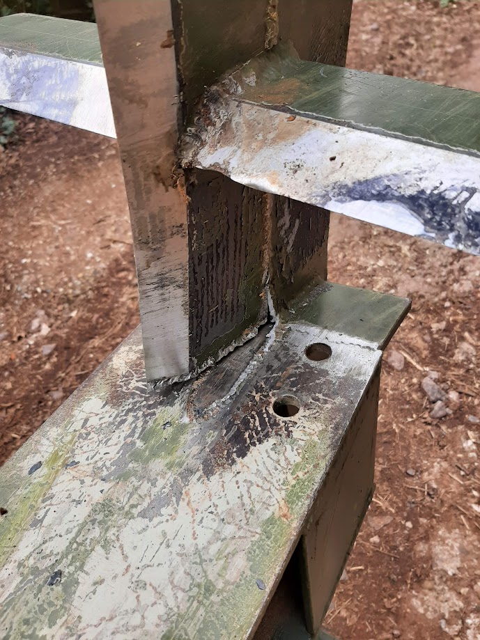 abgeschnitten mit Hydraulikpresse gerade gebogen und diesmal richtig angeschweißt. (nicht schön aber stabil)