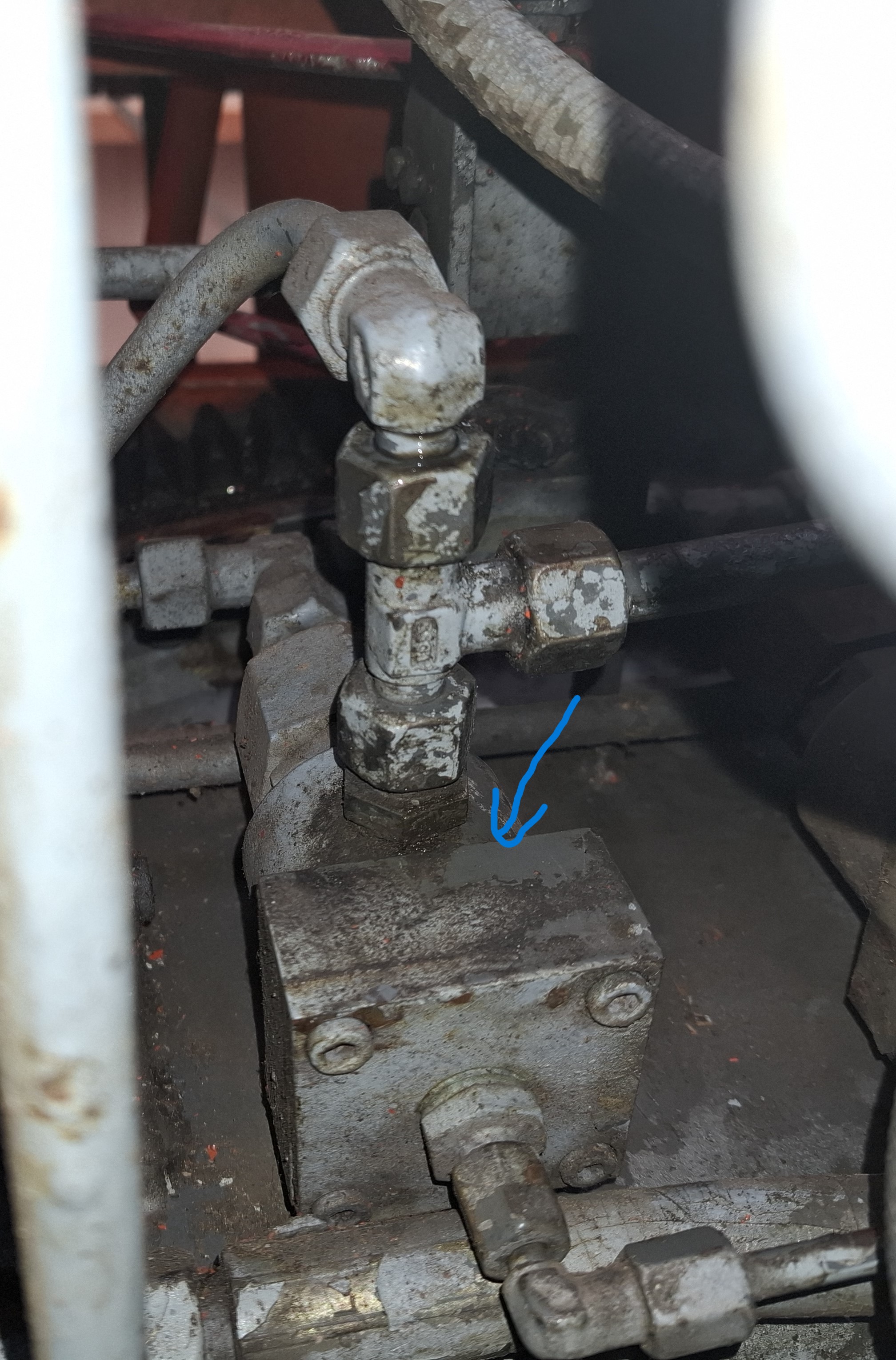 Konnte starken Luftverlust beim lösen der Fahrbremse an diesem Ventil Feststellen. Siehe blauen Pfeil .
