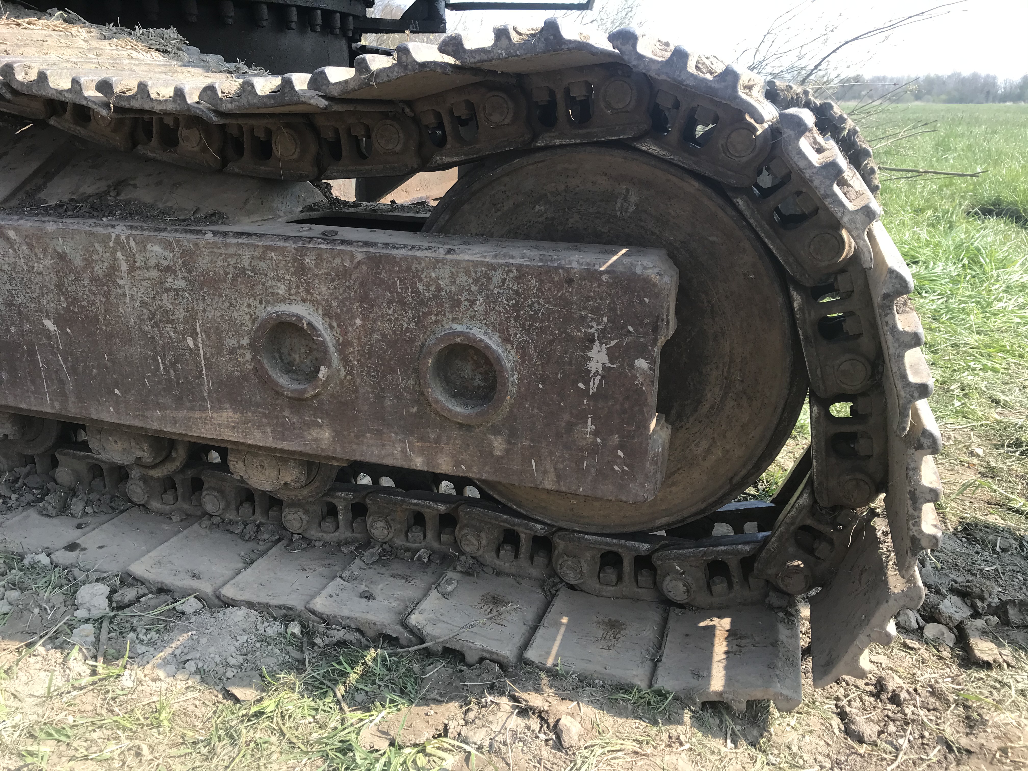 So Kette ist wieder drauf. Mit etwas Überlegung war das ganz einfach. Drei Stunden Arbeit und etliche abgerissene Seile ( auch Stahlseile) später war es dann geschafft. Jetzt muss ich nur noch den Schmiernippel vom Kettenspanner wieder reinschrauben und den Kettenspanner wieder mit Fett füllen und die Kette ist wieder gespannt. Leider habe ich keinen schmiernippeladapter für den 22mm Flachschmiernippel vielleicht bekomme ich ja heute einen von einem bekannten, dann ist der Bagger wieder Fit. Flachschmiernippel