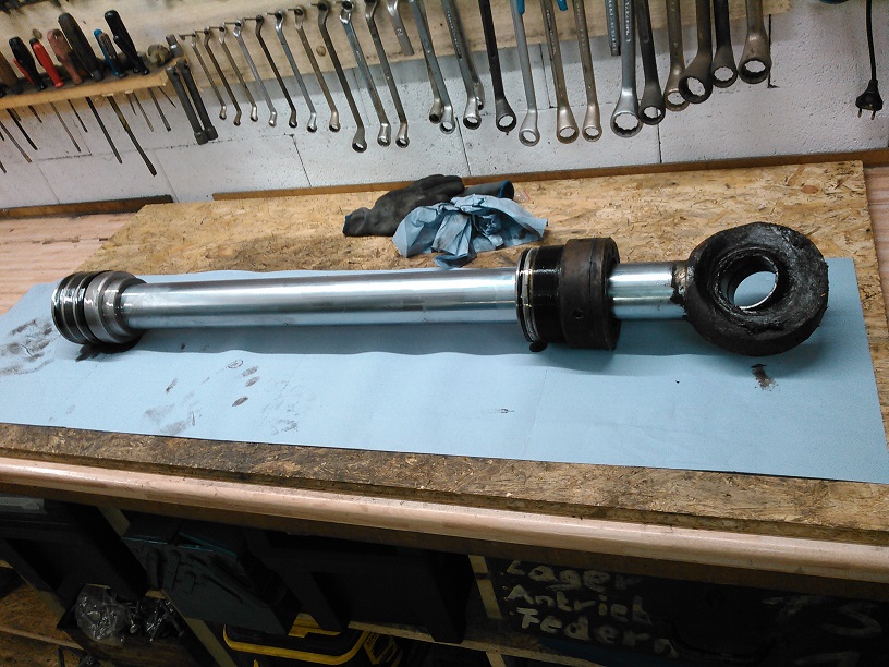 Alte buchsen sind aus den armen ausgebaut und die neuen buchsen der arme und der zylinder sind da und natürlich der dichtsatz für den löffelzylinder.wie heisst es bei vw "der einbau erfolgt in umgekehrter reihenfolge"