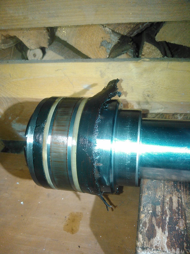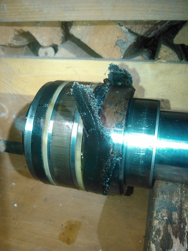 ich hab am we mal den grossen knickzylinder abgebaut und zerlegt.jetzt weis ich aujeden fall warum der arm nachließ und keine richtige kraft mehr da war.der nutenring ist regelrecht zerissen und das ist nicht beim ausbau passiert.es sieht so aus als ob der zylinder über längere zeit voll ausgefahren stand es haben sich rost ansätze im zylinderrohr gebildet und ich denke das der nutenring angepappt war und desshalb so zerfleddert aussieht.naja und wegen dem rost hab ich erst mal son billiges hohngerät mit 3 armen bestellt um alles ein wenig zu glätten.na mal sehen.