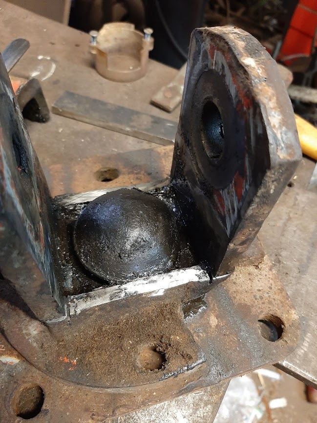 ich habe außer von einem dünnen Ring keine Reste von irgendwas im Fett gefunden und sauber gemacht hat vorher sicherlich niemand. :lol: :lol: Kann sein, dass das Teil von Anfang an soviel Spiel hat (was eigentlich nicht logisch ist) und deshalb das beweglichen Teil in Linsenform ausgebildet ist. Der Bolzen hat einen Durchmesser von ca. 36mm, da reisst nichts ab. Vielleicht hat jemand so ein Teil im Originalzustand und kann Licht in das Dunkel bringen.