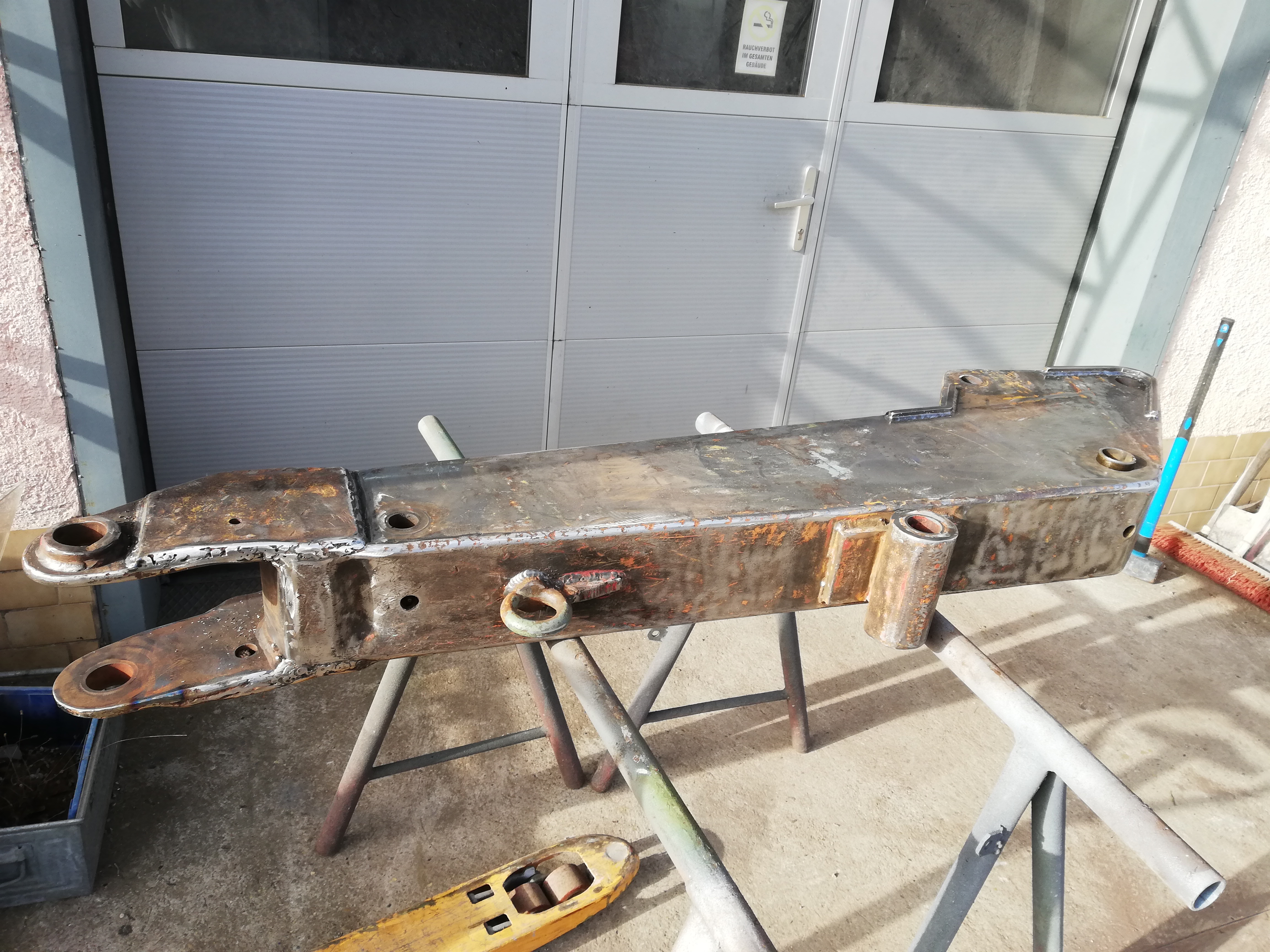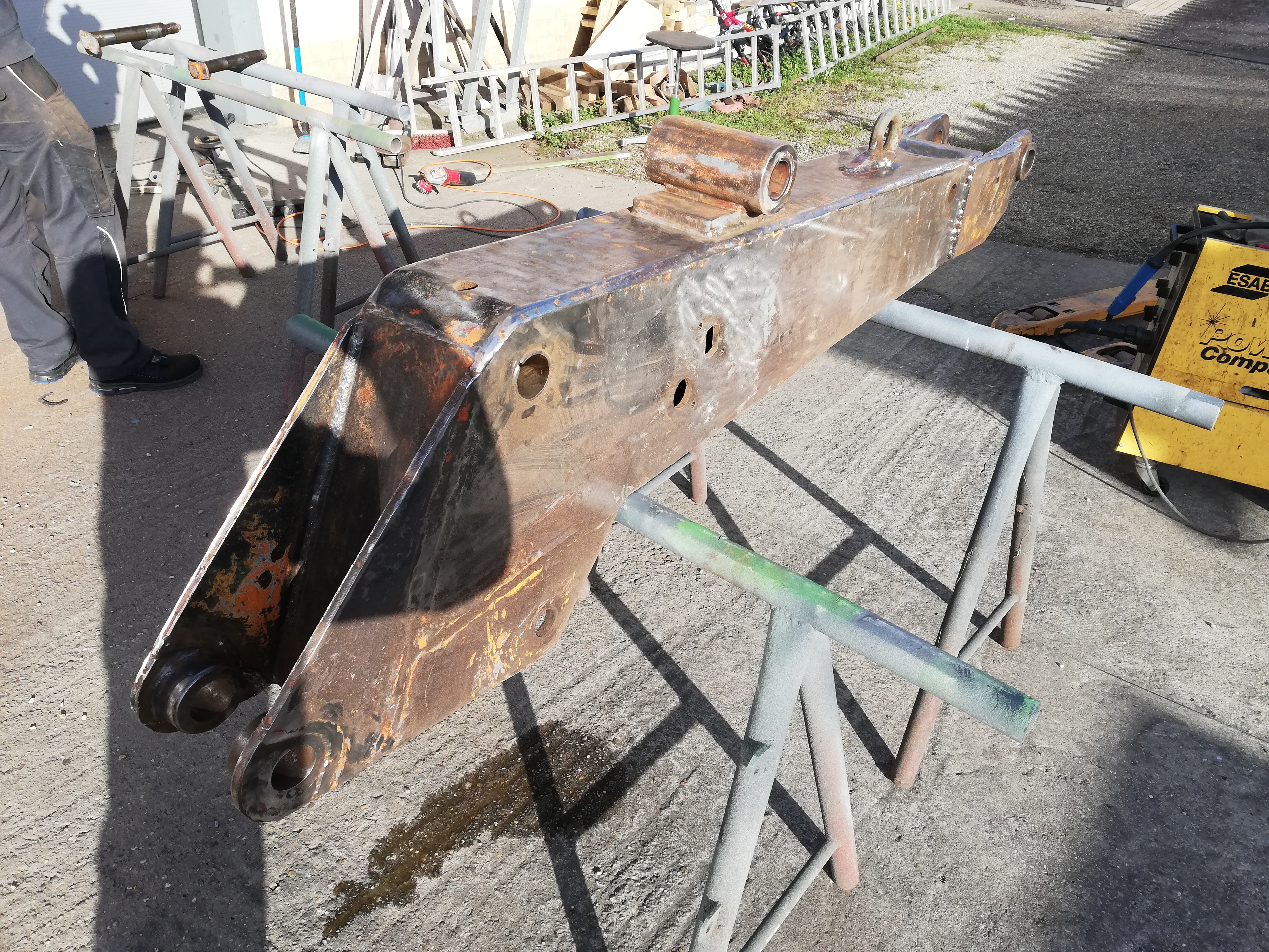 Das untere Teil vom Baggerarm habe ich mir heute vorgenommen. Das hat schon einiges über sich ergehen lassen müssen. Die Augen vom einen Zylinder waren Mal mit samt den zwei Blechstücken die sie halten abgerissen und würde wieder angeschweißt, die Augen vom anderen Zylinder sind aktuell gerade abgerissen und mir quasi entgegen gefallen. Unten war die Aufnahme der Schaufel wohl Mal ziemlich verborgen. Hier hat jemand der offensichtlich nicht schweißen könnte zwei Stücke Blech "aufgeklebt".