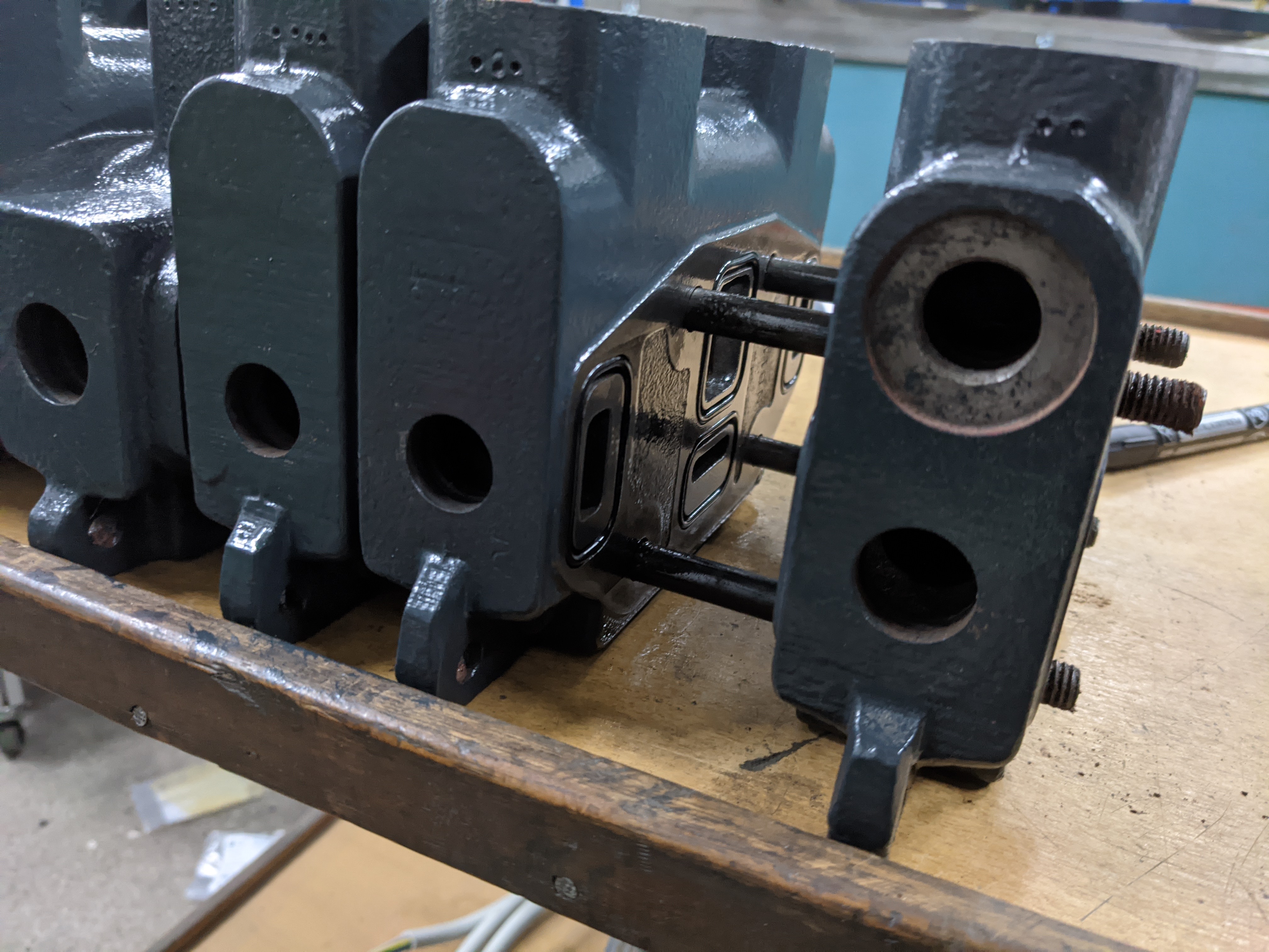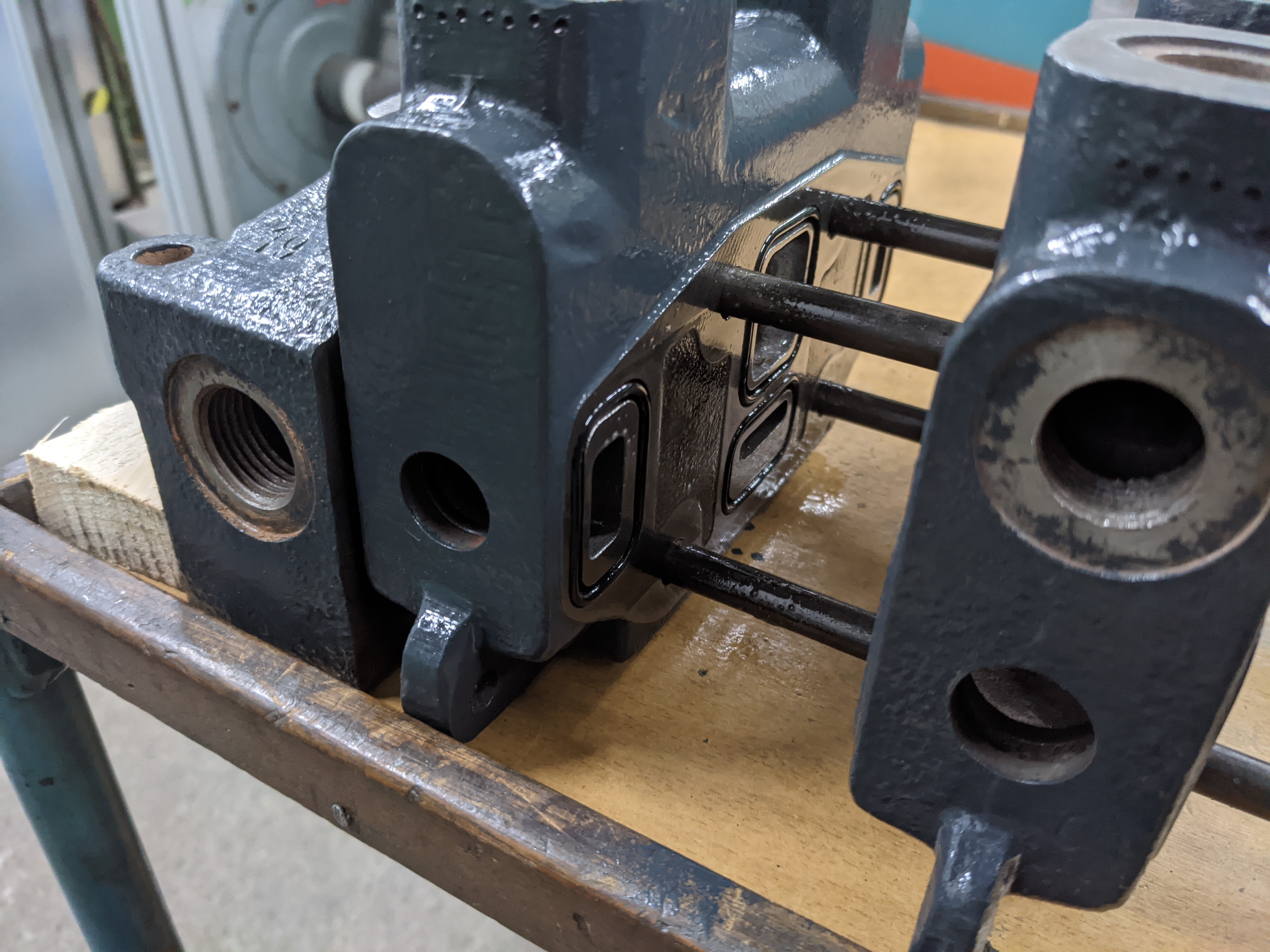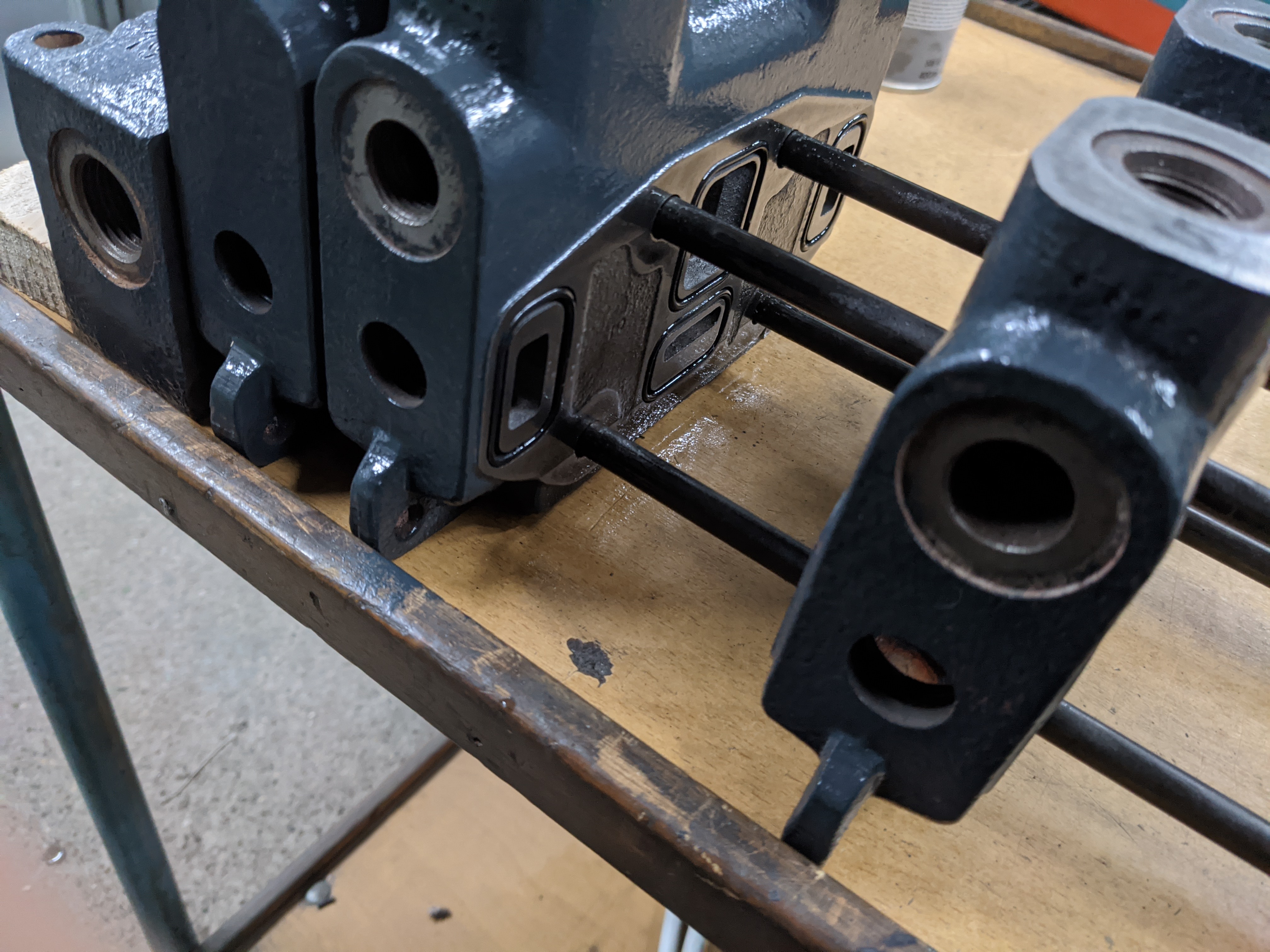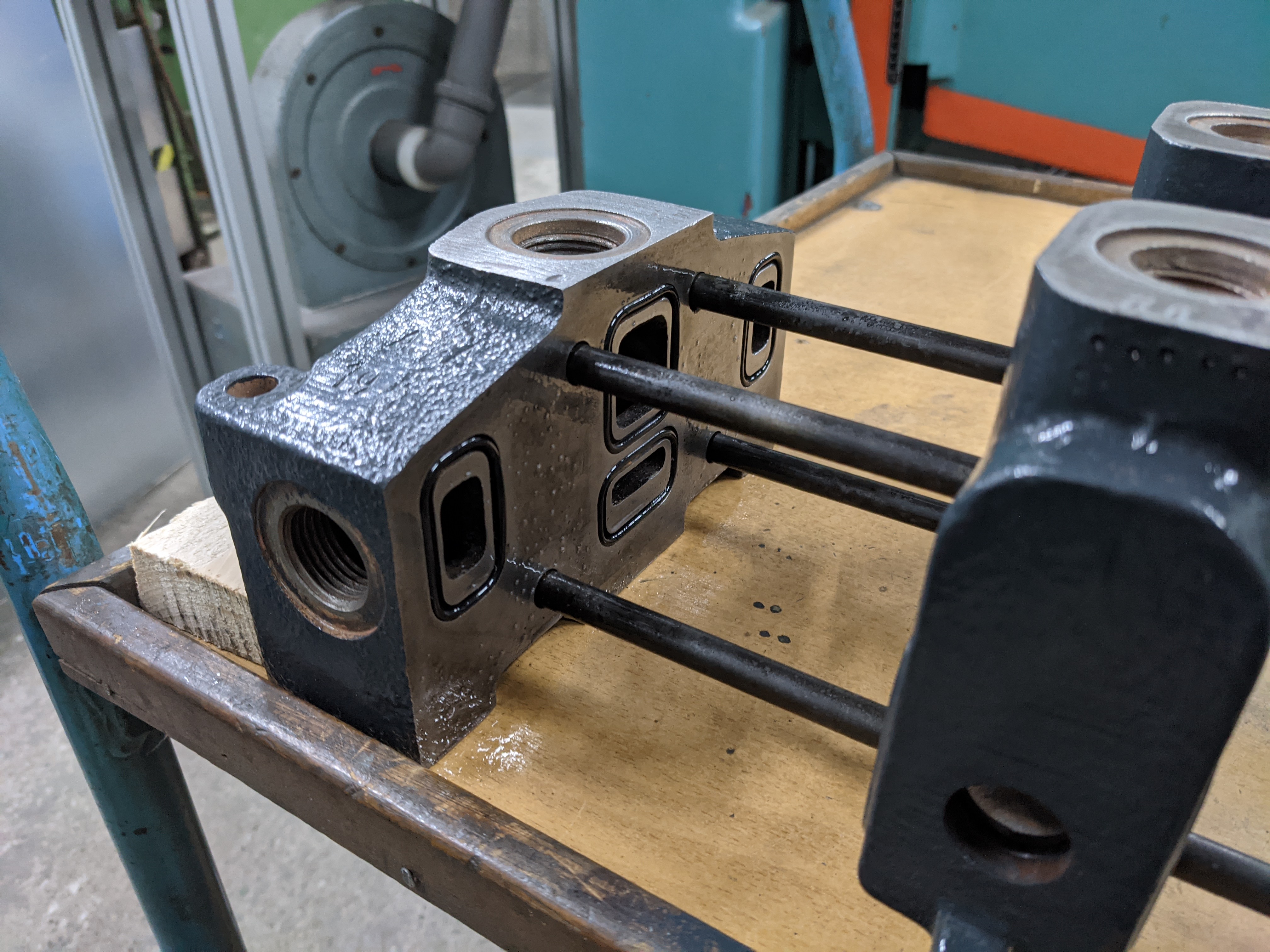 Scheibchen für Scheibchen wird wieder ein Steuerblock aus den Gussteilen. Hat erstaunlich gut geklappt die O-Ringe in eckige Nuten zu drücken und dann alles auf einmal mit ewig langen Schrauben zu verspannen.