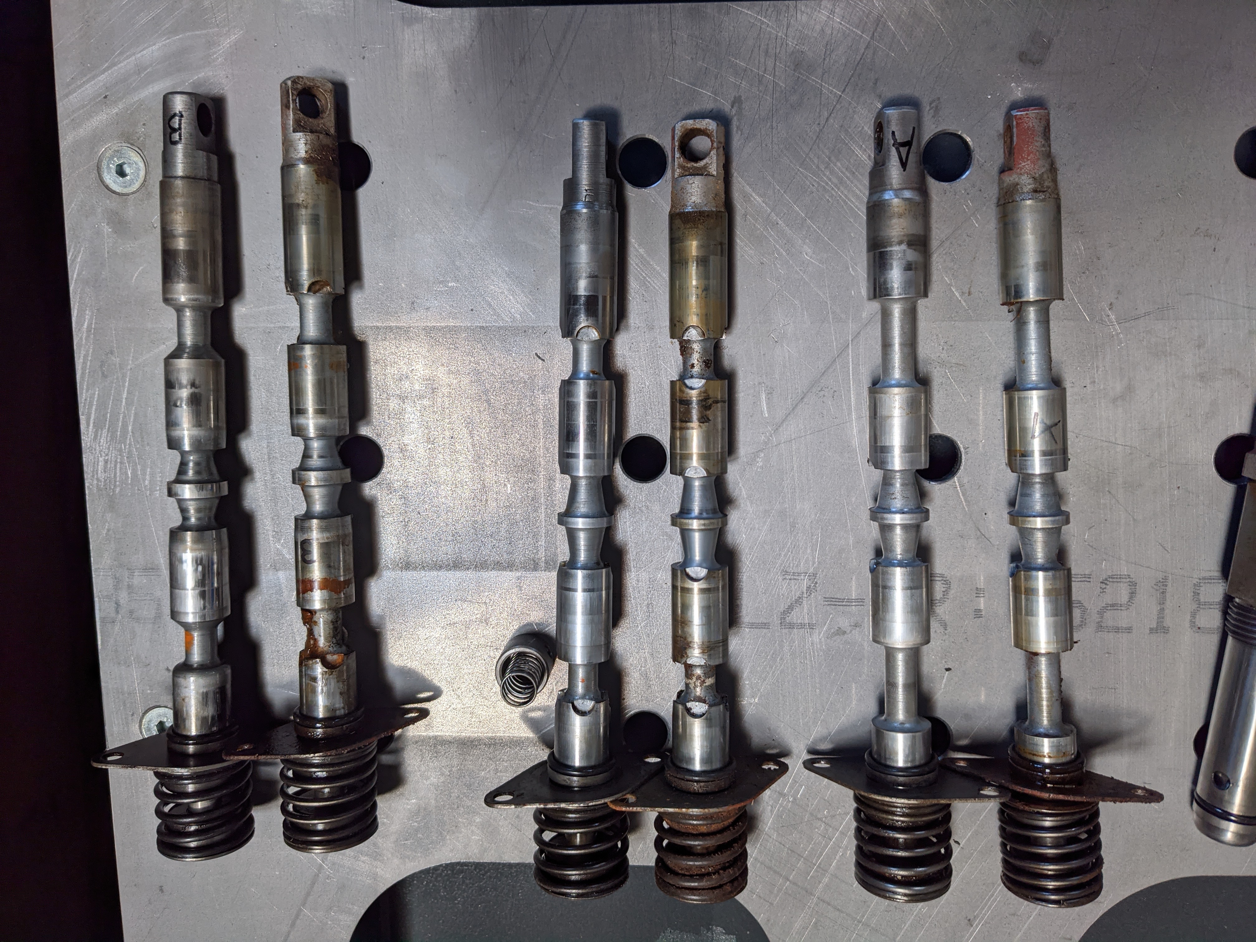 Hier jeweils die Ventilschieber vom Ersatzteileträger und vom eigentlichen Steuerblock nebeneinander.