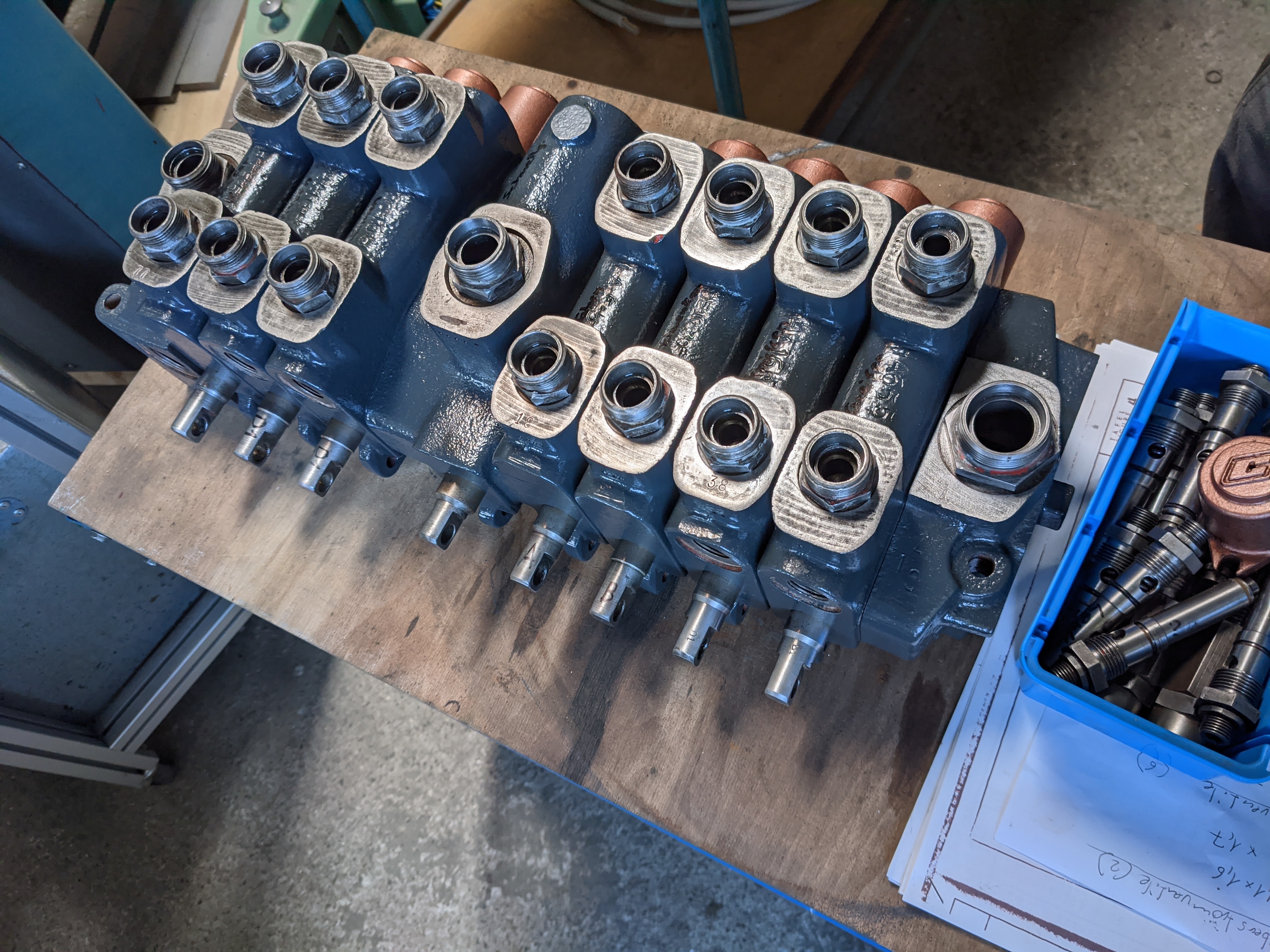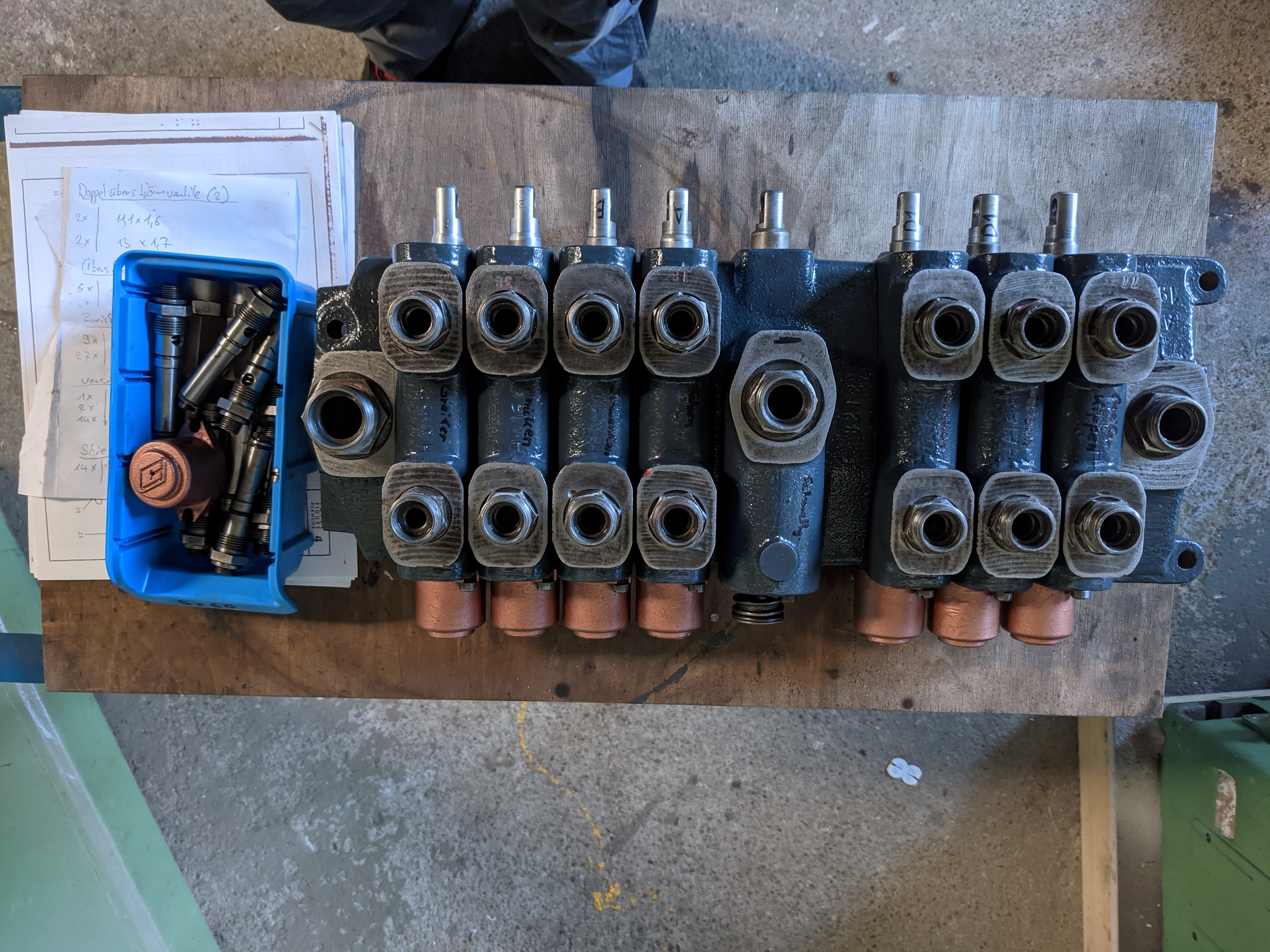 Aber im großen und ganzen ist der Steuerblock jetzt (fast) fertig. Sollte es hier jemand geben der sich mit diesen Ventilen auskennt wäre ich aber trotzdem sehr froh, ich bin nicht so der Hydraulikprofi.