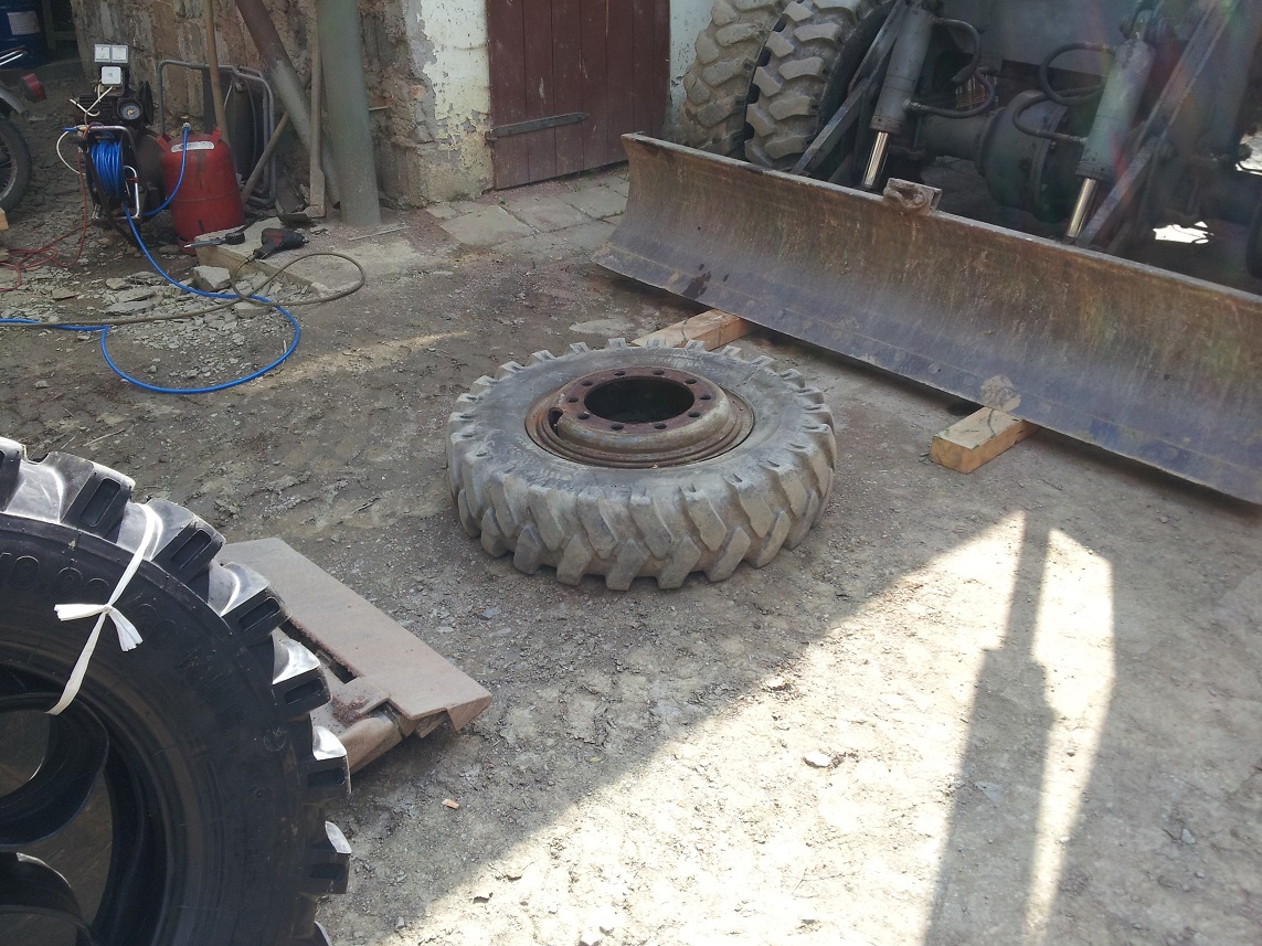 .Ein reifen ist mir noch kaputt gegangen hab gleich einen neuen bestellt und auch gleich gewechselt man gut das der bagger eigene montierwerkzeuge hat sonst hätte ich den reifen nie runter bekommen