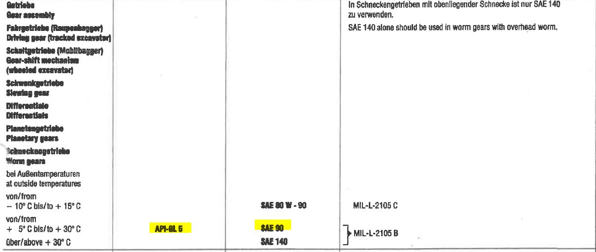 Kann ich für alle Getriebeteile (Planeten, Achsen, Schalt-/Fahrgetriebe,Schwenkmotor,..) ein API GL-5 SAE 90 problemlos verwenden ?