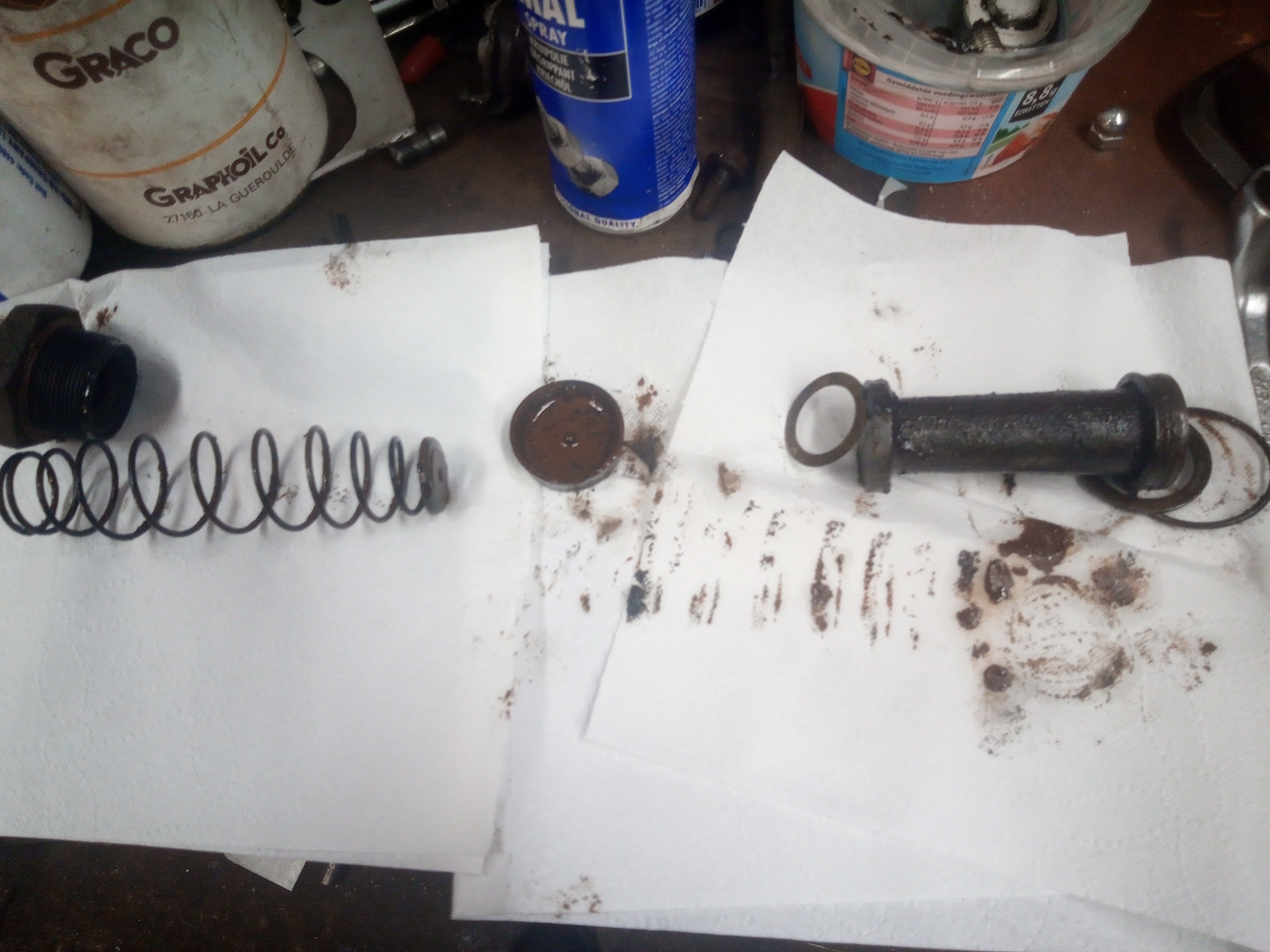 Bei Dir sieht es auch wild aus :-), evtl wurde auch mal etwas falsches aufgefüllt. Du kannst es mal versuchen, alles zu reinigen. Wichtig ist, daß die Dichtungen i.O. sind und der Kolben sich leicht hin und herbewegen läßt.