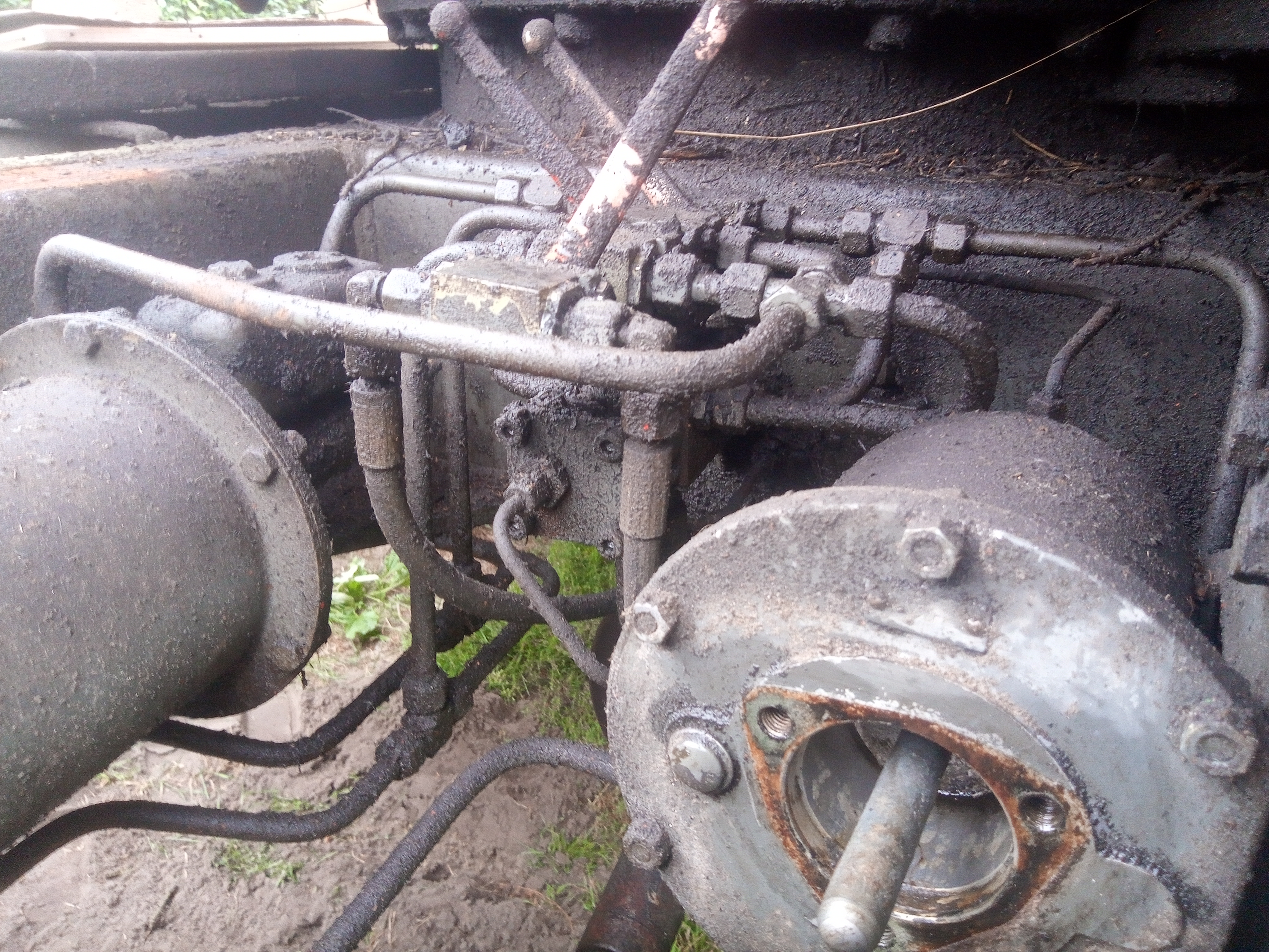 Was mir jetzt fehlt, ist das Wissen darüber, welches Fass was macht. Der Drucklufttank muss zwischen 5,3 und 5,6 barg und der Hydrauliköltank bei 0,5 bis 1 barg gehalten werden, um das Öl zur Pumpe zu drücken. Die Anzeige oben in der Kabine zeigt 6 bar an (weißer Zeiger Drucklufttank?), aber der rote Zeiger zeigt nichts an. Welchen Druck zeigt der rote Zeiger an und wozu dient das Fass hinter dem Sitz? Ich habe die Bedienungsanleitung und die Teileliste, was sehr nützlich ist, aber eine technischere Beschreibung wäre noch besser, gibt es so etwas?