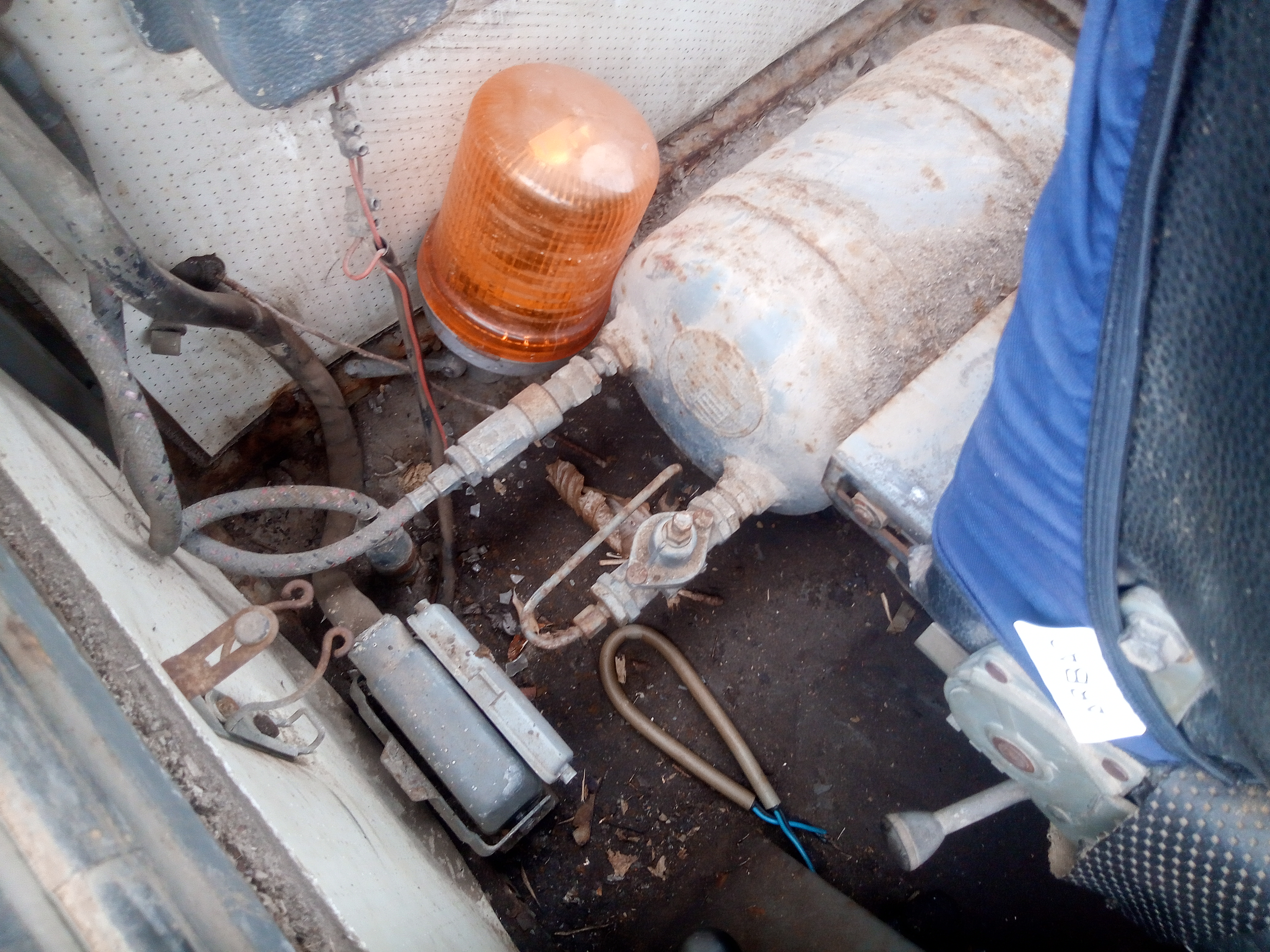 Der hintere Luftkessel in der Kabine ist für die Handbremse.