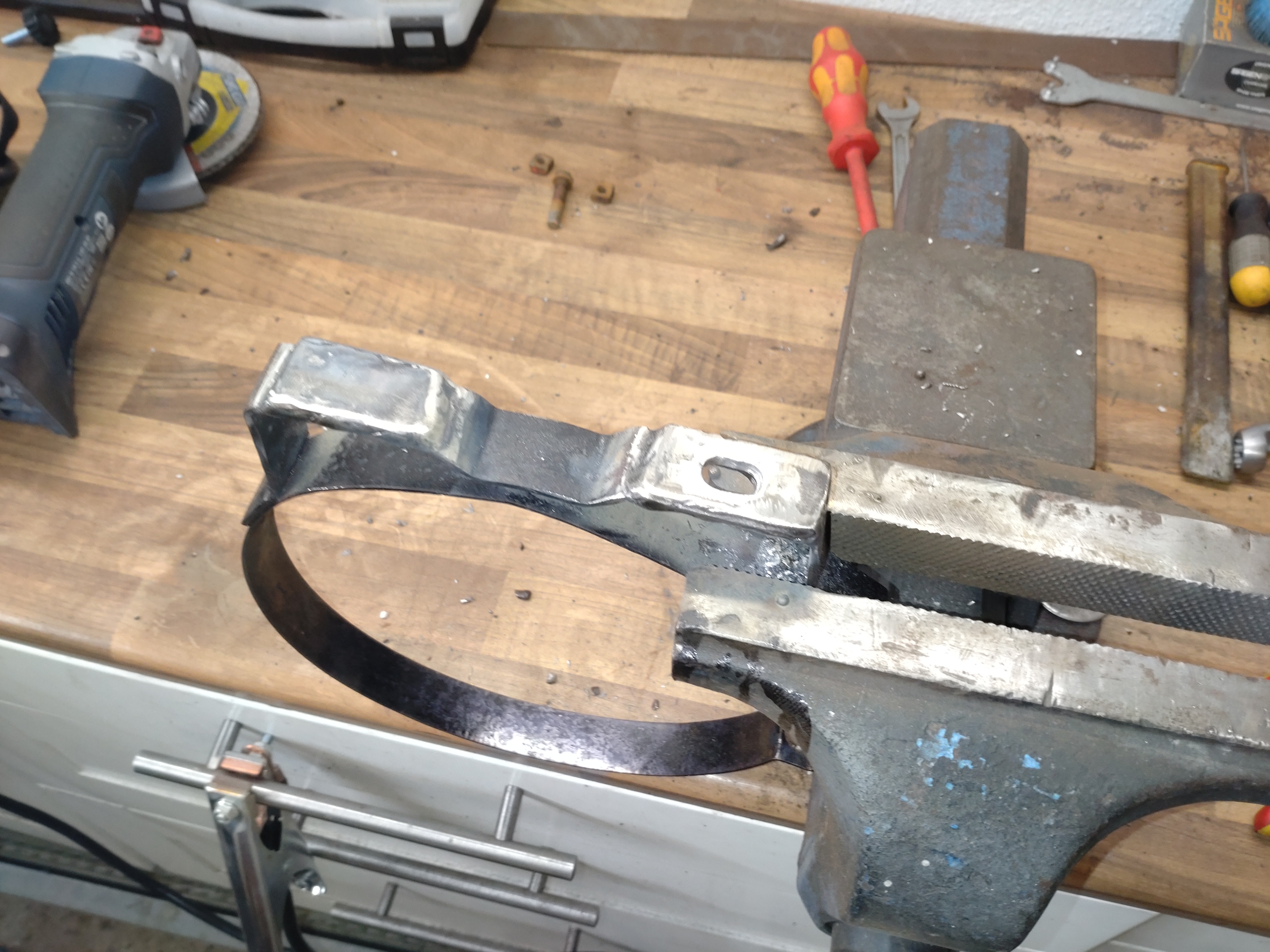 Die Halter für die Luftansaugung waren beide an den Langlöchern gebrochen. Diese habe ich wieder geschweißt und mit 4mm Flach-Material verstärkt.