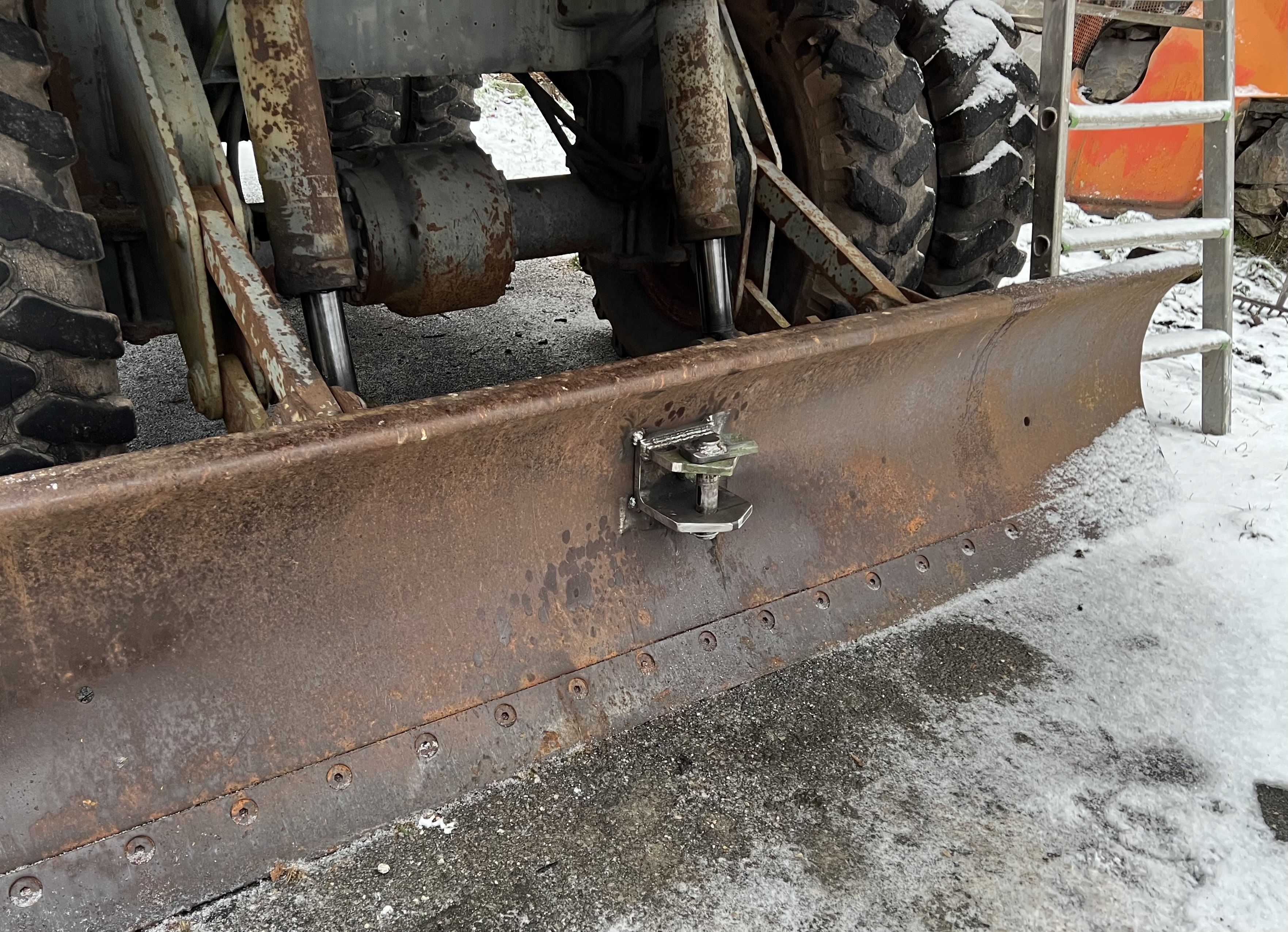 Die Zugöse möchte ich durch Anschweißen einer zweiten unterhalb zur Anhängerkupplung umfunktionieren, um damit den Rungenwagen im Wald ziehen und gleich beladen zu können. Alternative wäre das Anschrauben eines Zugmauls am Schild, ich weiß aber noch nicht, wie ich das bohren soll, Ideen?