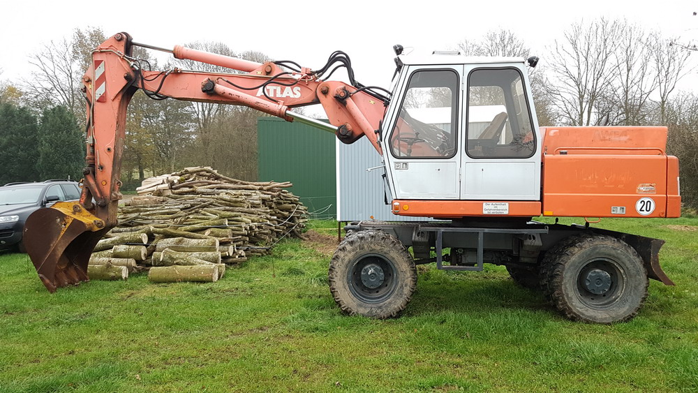 Der Bagger wurde in der Nähe von Leipzig gekauft und erstmal per Tieflader bis kurz vor Flensburg, zu mir nach Hause transportiert. Eigentlich stellte ich mich auf eine große Überholungsarie ein, doch der Bagger ist echt gut in Schuss. Keine einzige Leckage! Auch das Spiel der Bolzen und Gelenke ist quasi nicht vorhanden. Dank eigener Drehbank wäre die Überholung dessen kein Problem gewesen. Selbst die Kabine hat keinen Rost!