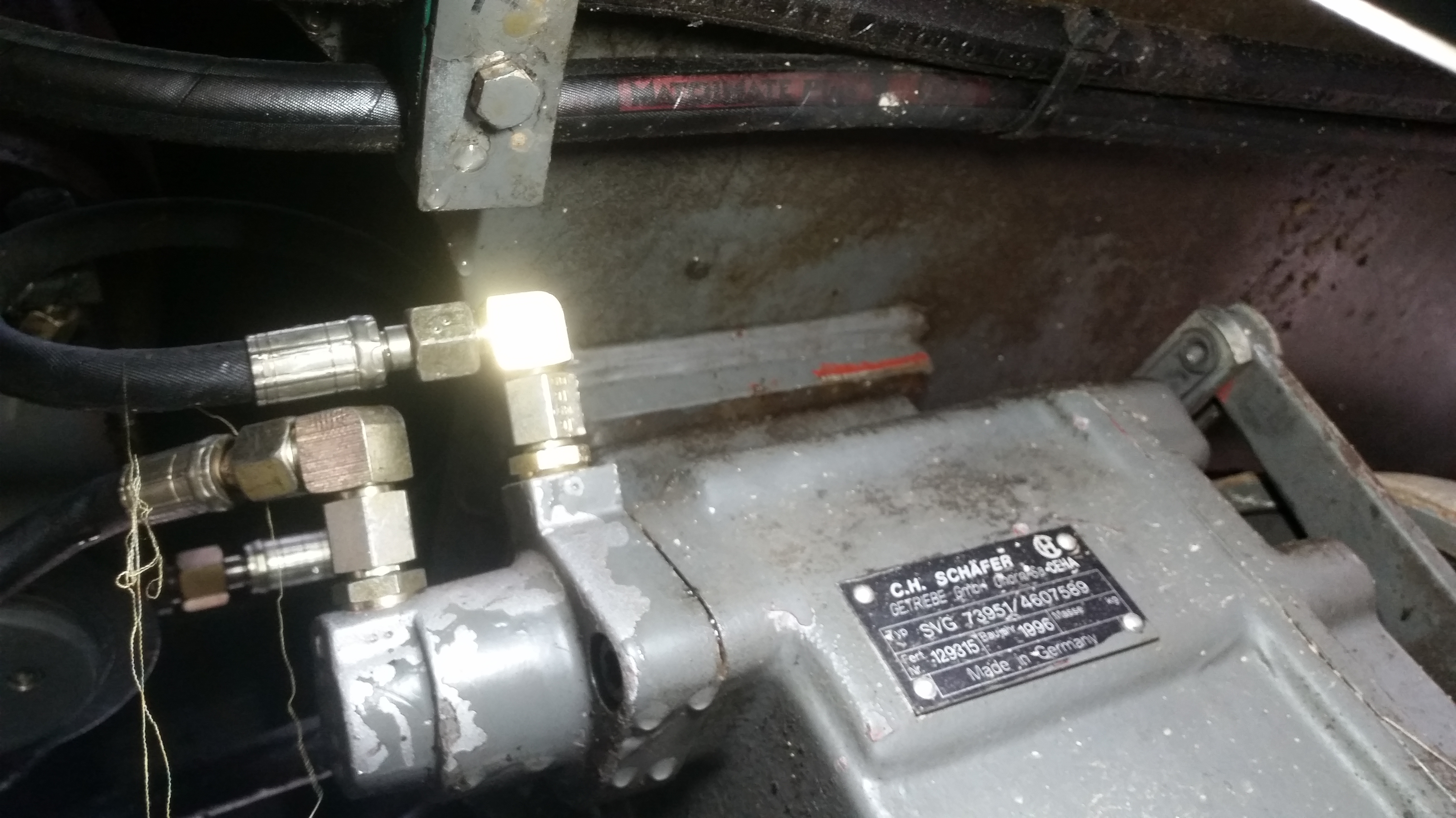Ich habe am Getriebe nur ein Ventil gefunden wo zwei Hydraulikschläuche drauf gehen wo von der Drehdurchführung kommen. Ich denke das könnte das Ventil sein das ihr meint. Kann es sein das es doch schon mit Hydraulik geschaltet wird?