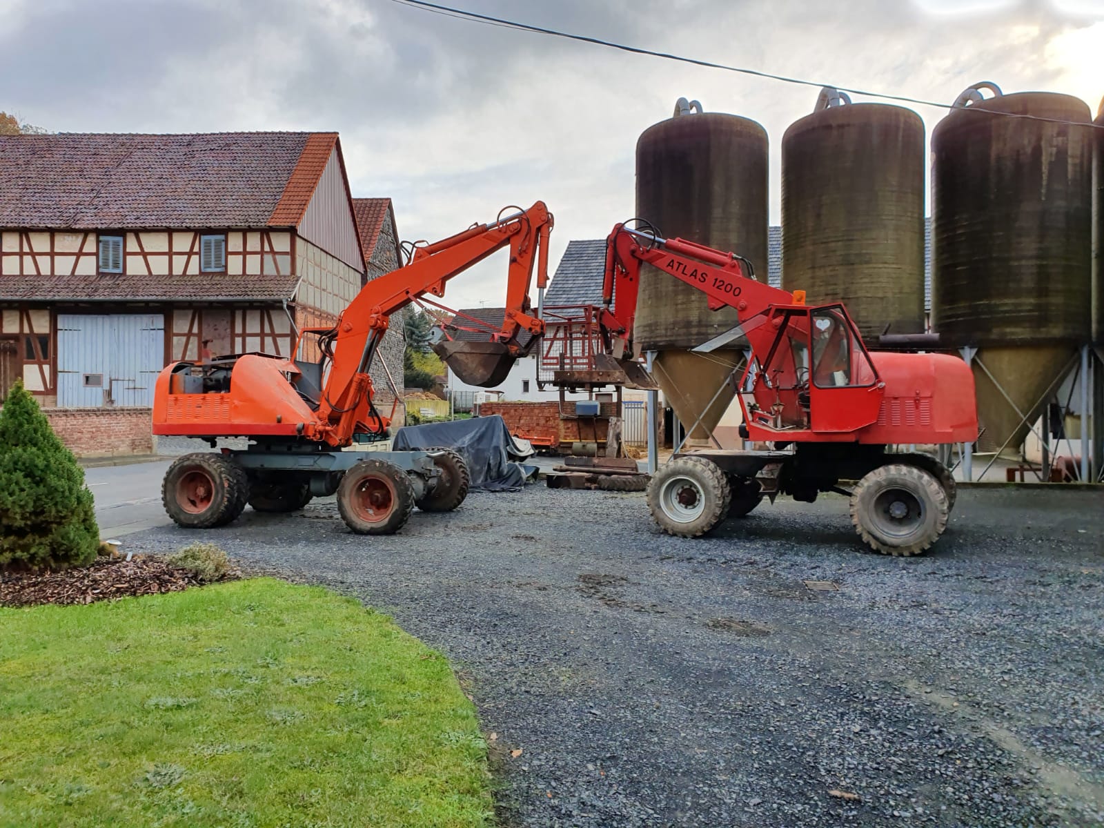 Hallo, habe vor ein paar Wochen einen Atlas in einer alten Feldscheune ganz in der Nähe angeboten bekommen. Mein Vater und ich haben bereits seit 20 Jahren einen AB1200 im Einsatz. Nun kommt der AB1300 dazu. der 1300er stand jetzt 20 Jahre, gestern wurde geprüft ob der Motor dreht, dreht und sprang sogar an. Morgen kommt frisches Hydrauliköl rein. Motoröl wurde auch schon gewechselt. Muss noch aus der Scheune geborgen werden. Mal schauen was die Begutachtungen in der heimischen Werkstatt alles aufdecken. War supergünstig und wird im Extremfall für unseren 1200er als Ersatzteilspender dienen. Es waren drei originale Löffel dabei, sogar der schmale mit hydraulischem Auswurf.