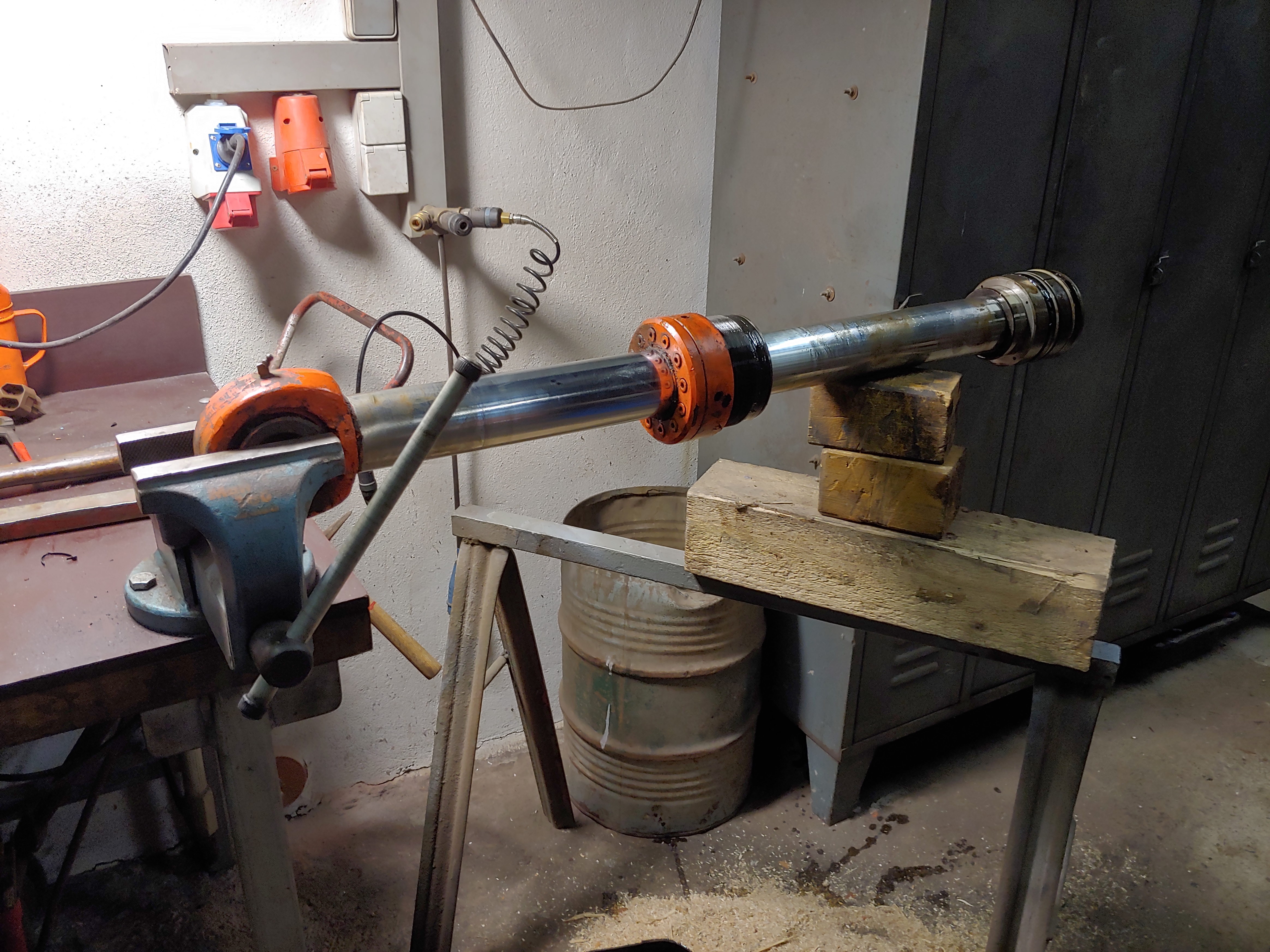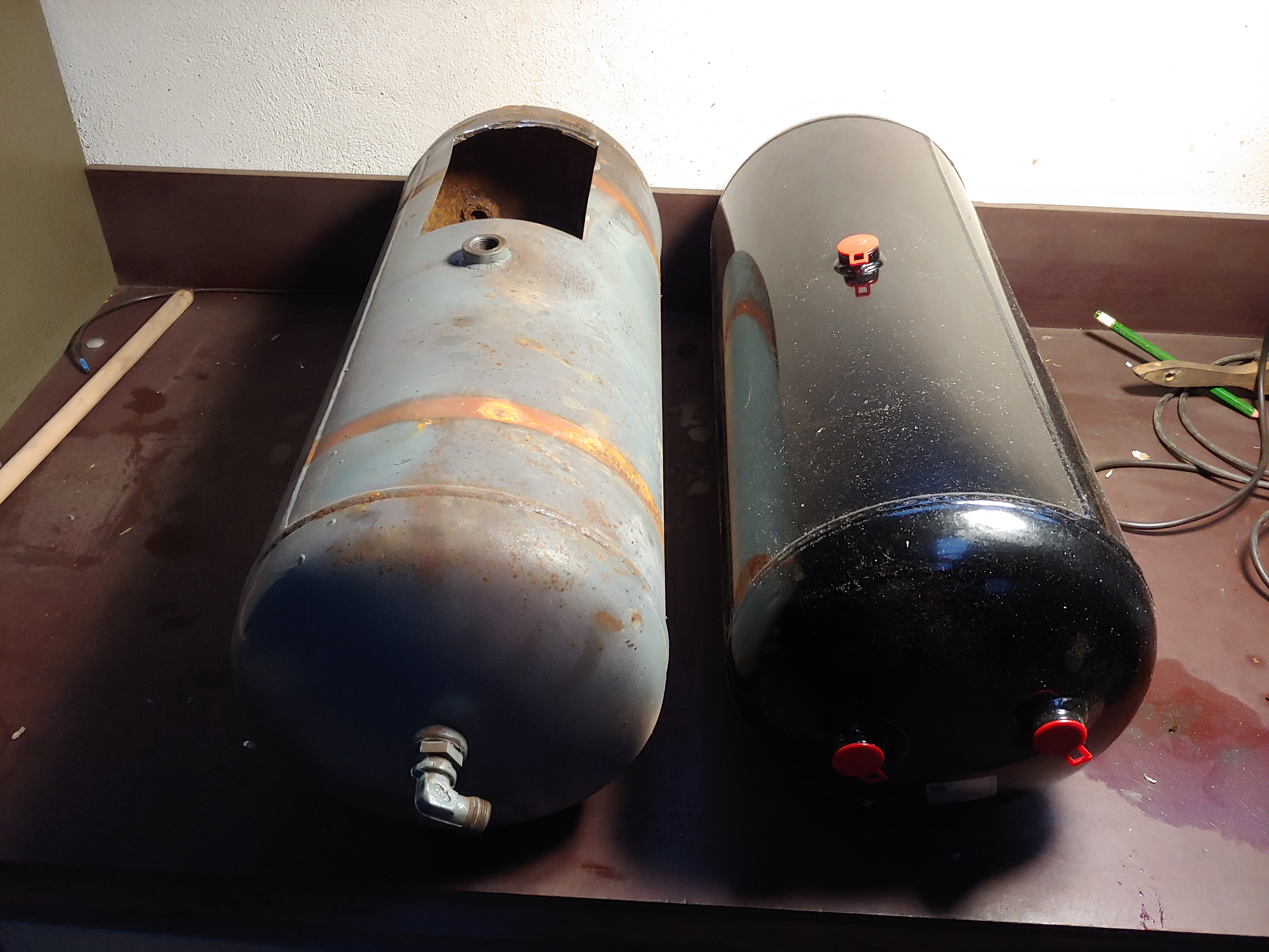 Der Druckluftbehälter wurde komplett neu gemacht. Wir wollten nur mal in den alten reinschauen, war sehr angefressen.