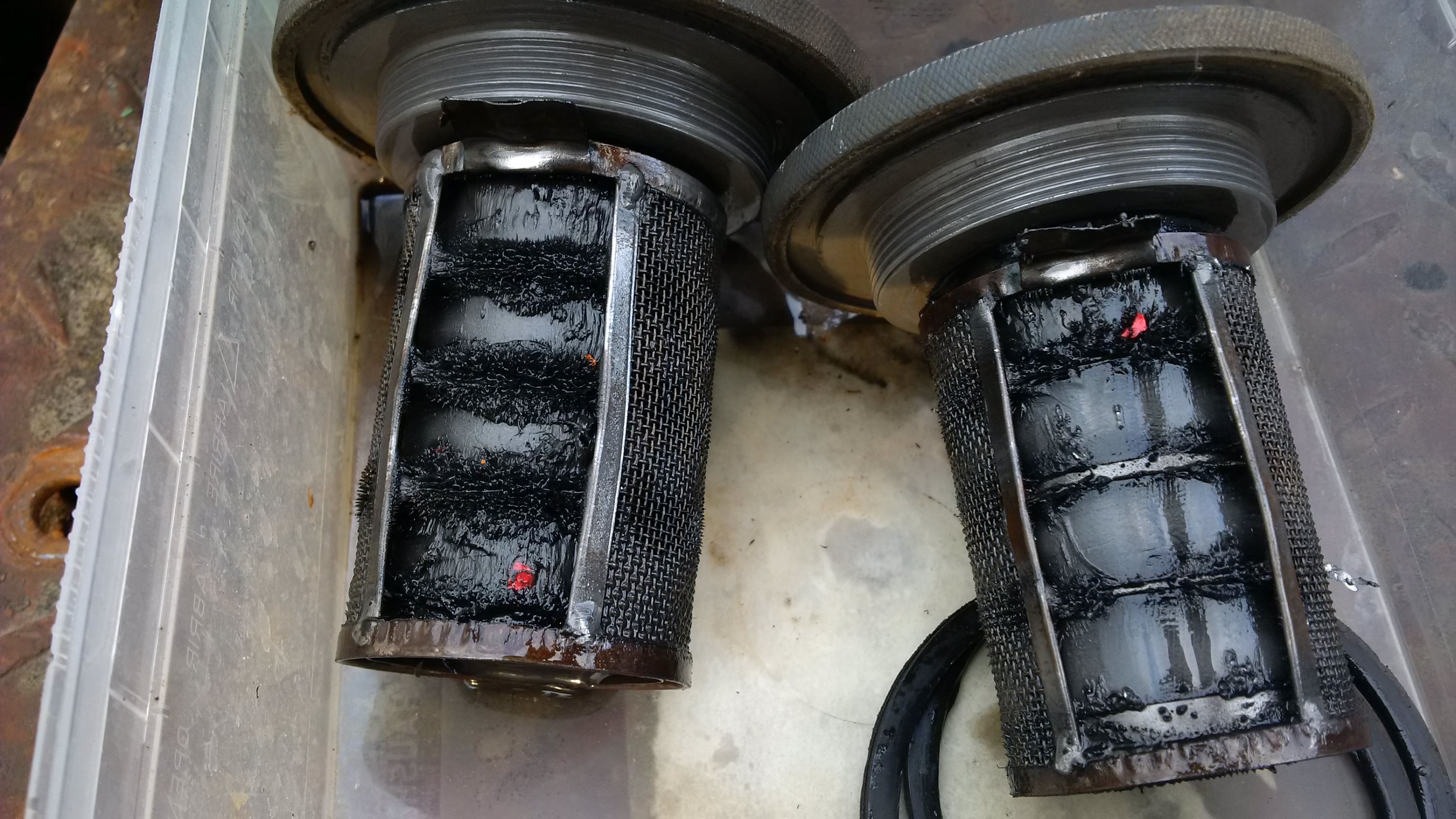 Gestern habe ich mir mal die Hydraulikfilter angesehen. Hier ein paar Bilder davon. Was meint ihr dazu? Sektkorken waren echt praktisch damit der Dreck beim Waschen nicht innen rein kommt.