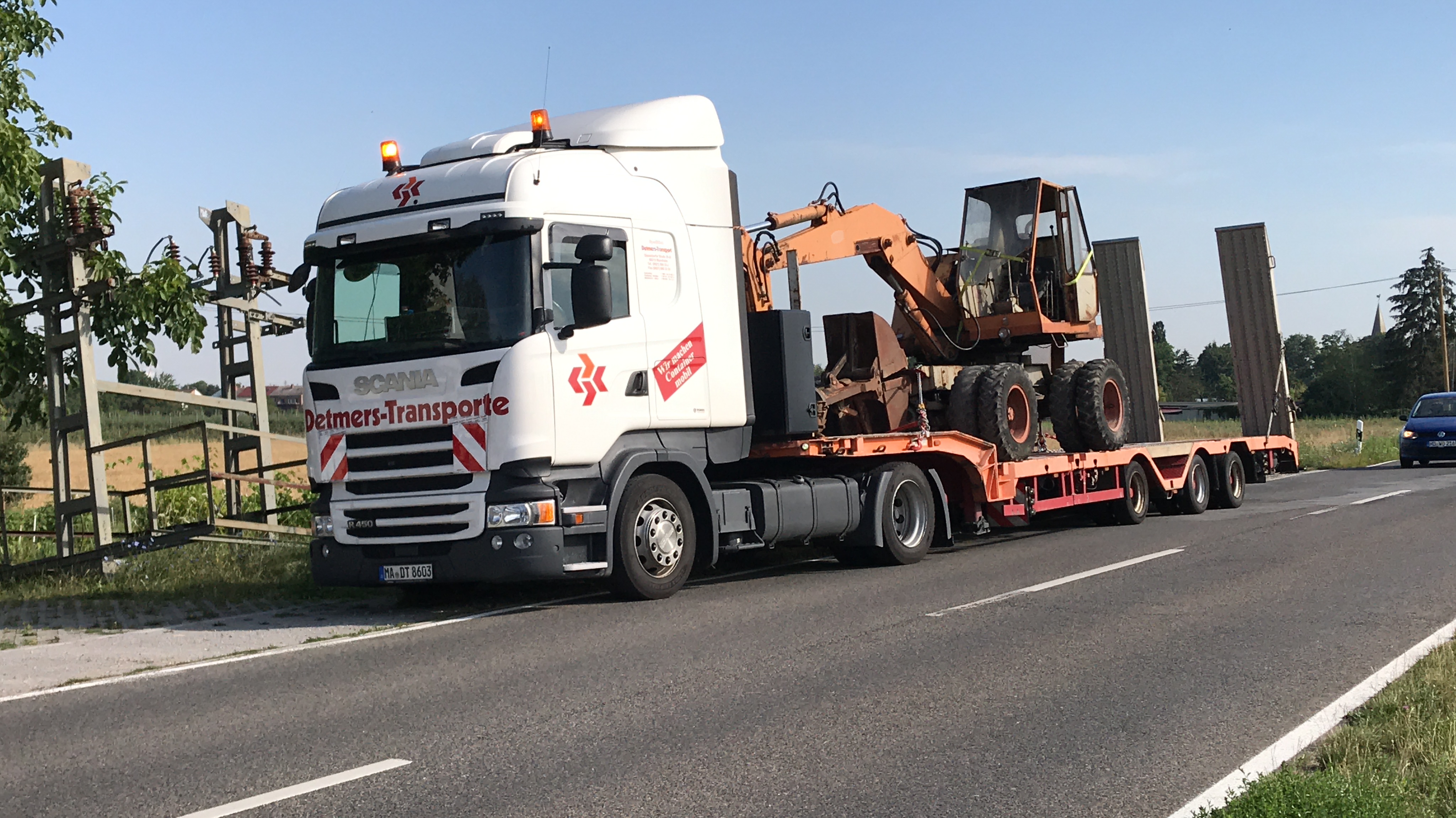 Dann kam die Stunde, da er auf den Tieflader musste, alles hat geklappt. Rauf und wieder Runter ohne Zwischenfälle. Nun angesprungen ist er beim Abladen nicht gleich. Von der kaputten Masseklemme die man mit einer Zange festhalten musste, wusste ich, nur dass ihn der Verkäufer mit der Batterie angelassen haben will wie ich aufgeladen hab (Motor lief schon wie ich kam) kann ich nicht ganz glauben >6 V Leerlaufspannung. Andere Batterie rein und er sprang an! Als erstes musste er dann gleich mal helfen Teile von besagtem Elektromasten zu zerlegen um seien Weg in den Garten frei zu räumen. Das hat er auch soweit klag los getan, nur am Stück konnte ich das Element leider nicht weg heben, womit ich zu den Wehwehchen und Problemchen des guten Alten komme. Und sicherlich etlichen meiner eigenen Wissenslücken.