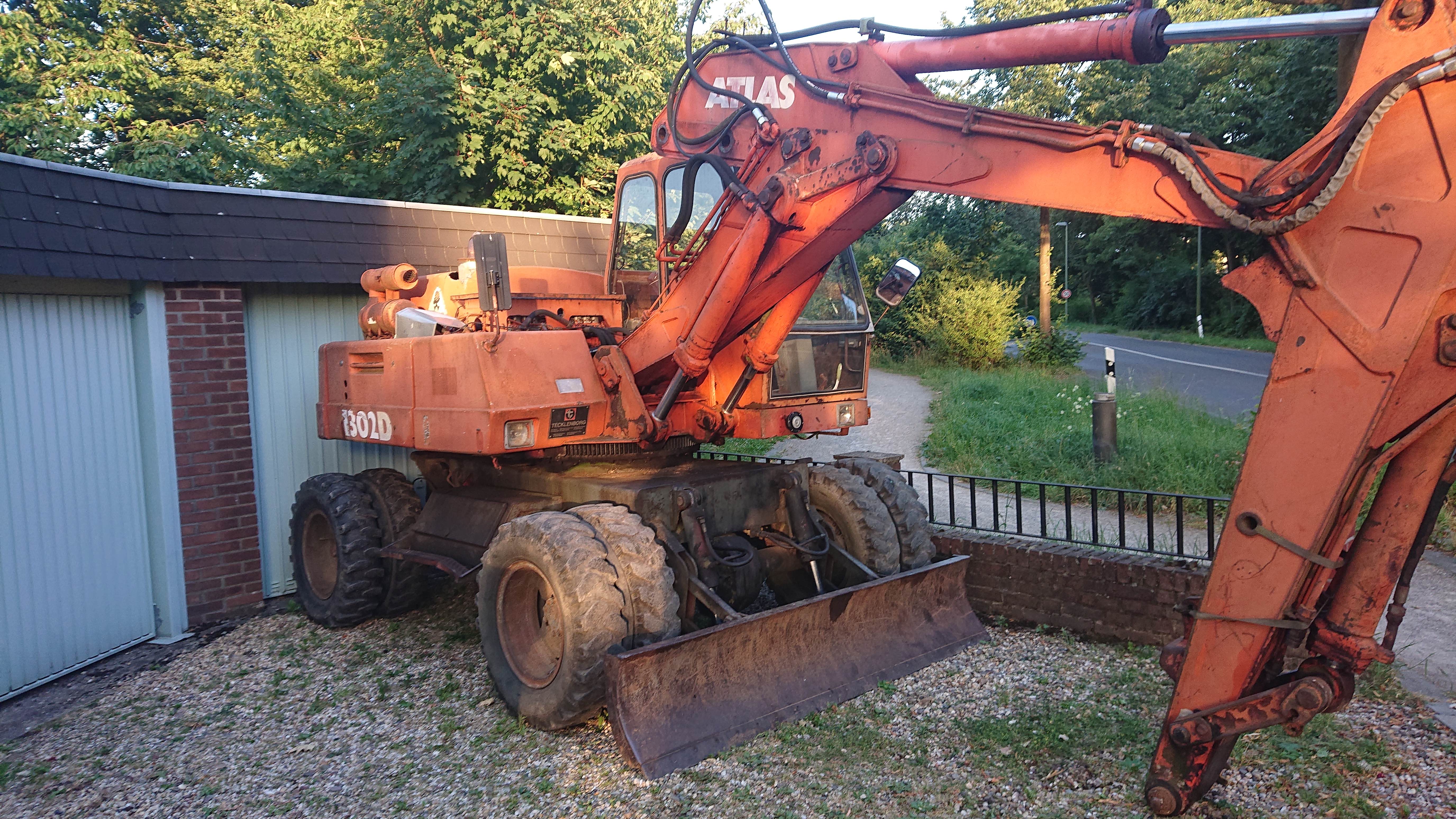 Da es noch ein paar Monate dauern wird, bis wir anfangen können, will ich die Zeit nutzen und die Maschine mal wieder "schön" machen. Natürlich werde ich mit der Technik anfangen. Die Bremsen (sowohl Fahrwerk als auch Drehbremse) arbeiten nicht wirklich und der Motor verliert reichlich Öl. Ein paar Schläuche würden sich über einen Austausch freuen, bevor es zur großen Sauerei kommt. Und die Stempel der Pendelachssperre arbeiten nicht.