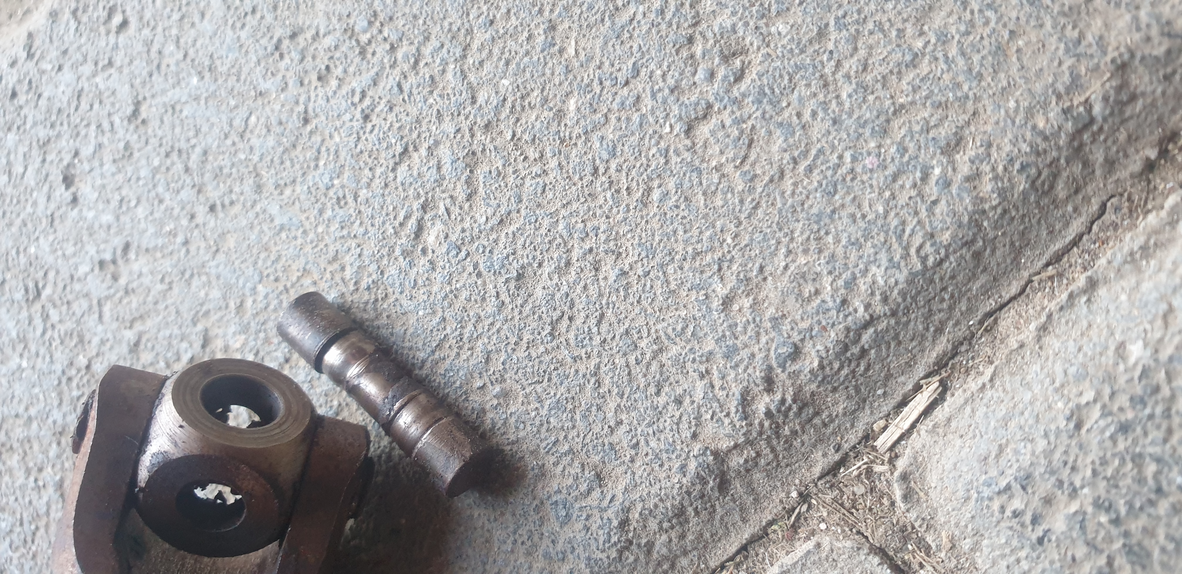 Dann konnte man mit einem Durchschlag den im Bild sehenden Bolzen rausschlagen.