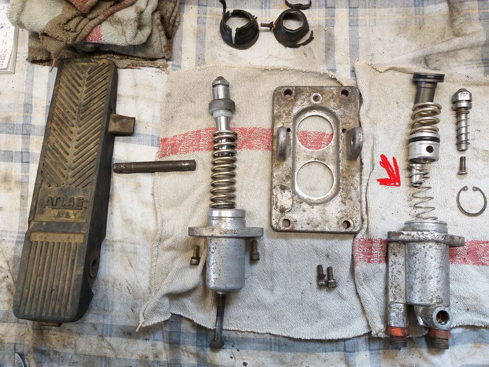 Am besten die obere Platte abbauen, der hintere Kolben ist dafür zuständig. Dann kannst Du die Manschette abbauen. Unten am Pedal sind dann zwei Leitungen die entfernen und die zwei Schrauben herausschrauben. Dann kannst du das Teil abnehmen. Dort ist ein Seegering, diesen entfernen und du kannst das Innenleben herausziehen. Schau Dir mal alle Dichtungen an, wie gesagt, evtl. ist auch bloß viel Schmutz drin.
