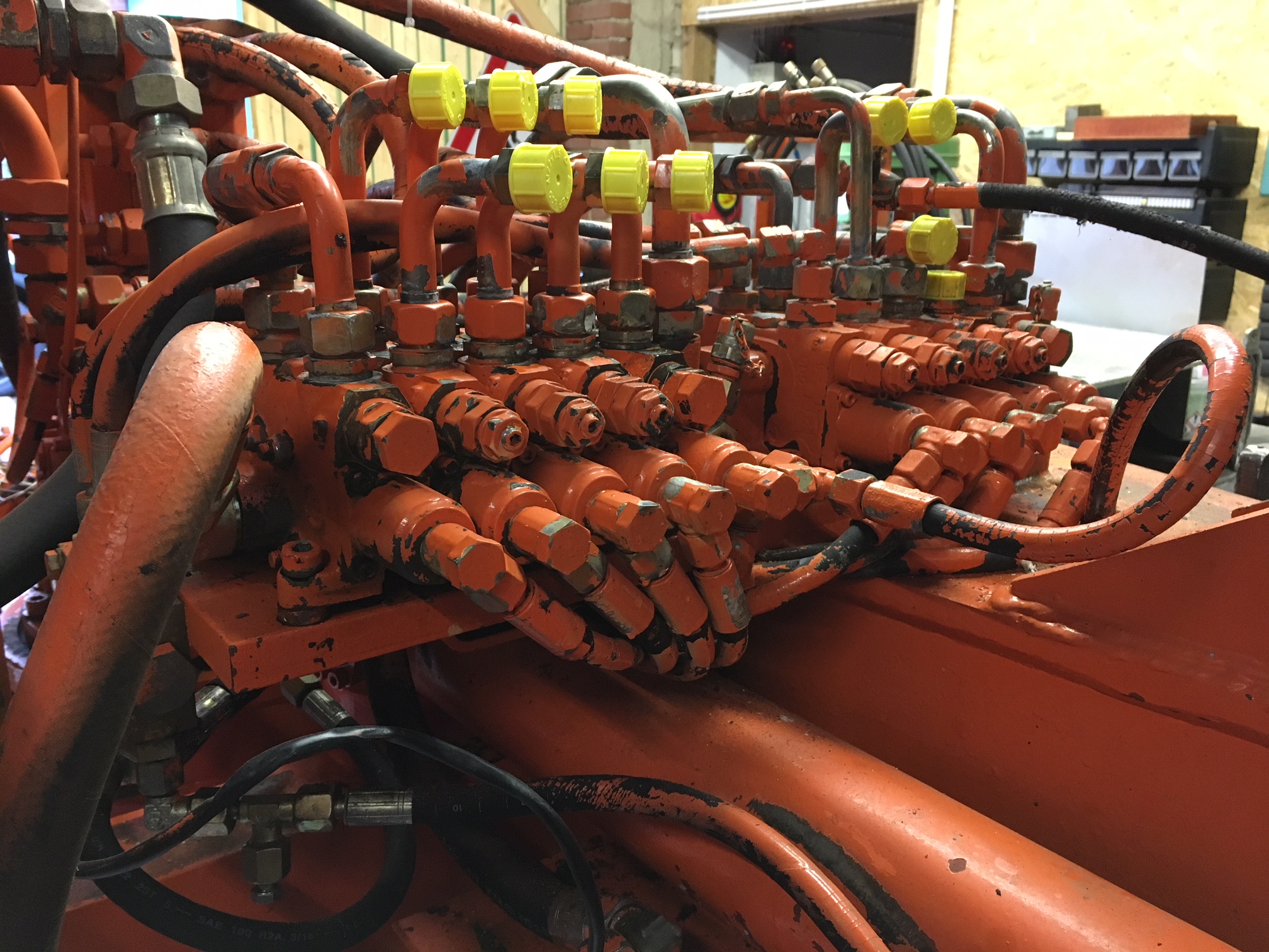 Beim Pedal für den Schwenkarm bzw. Verstellausleger sowie im Gaspedal sind kleine Ventile wie in den Vorsteuerhebeln verbaut. Da ich hier keine Ölrückstände gefunden habe, scheint hier alles dicht zu sein.