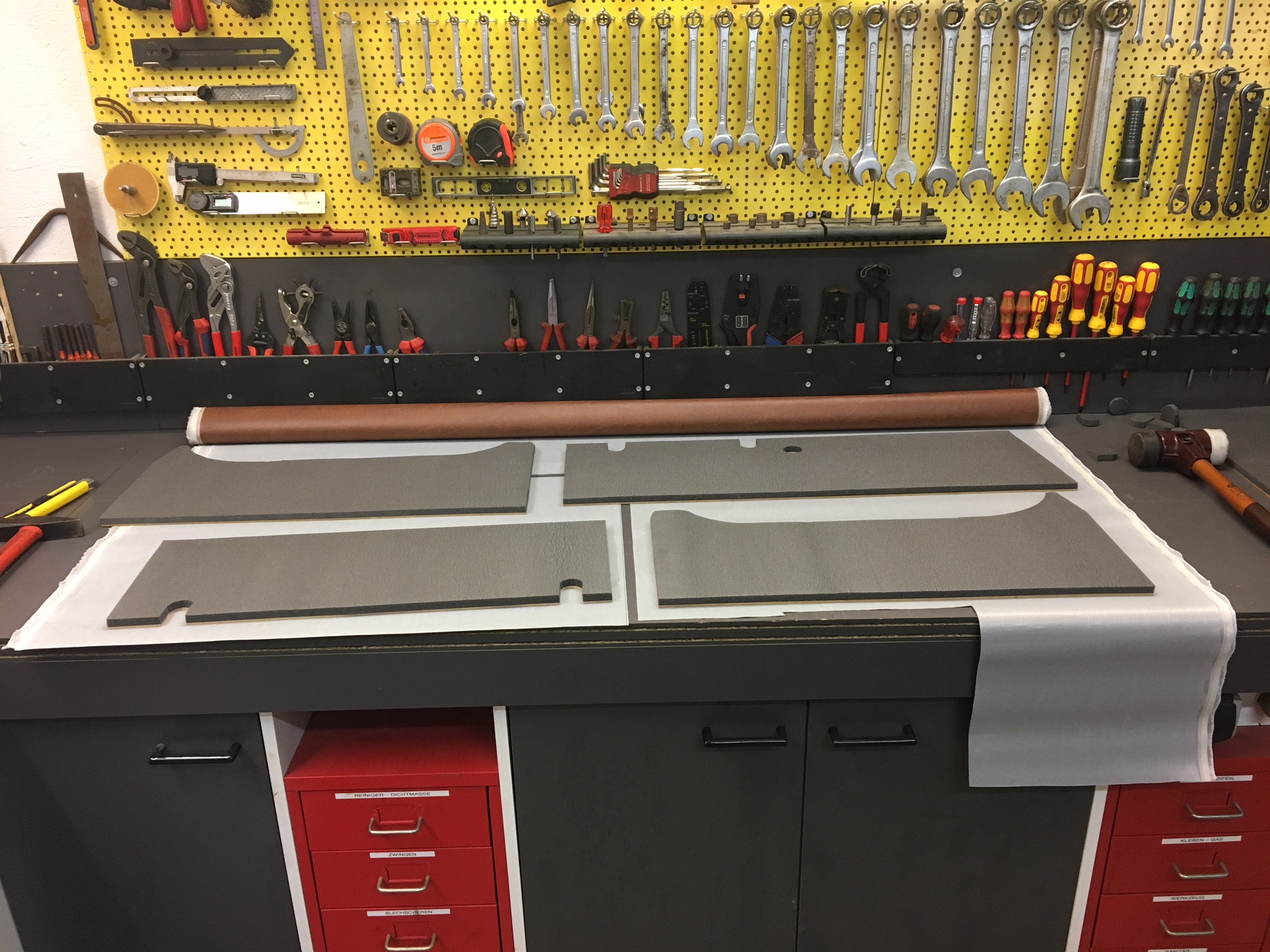 Wie bei Atlas, habe ich die Verkleidungen aus Hartfaserplatte, PE-Schaum und Kunstleder hergestellt.