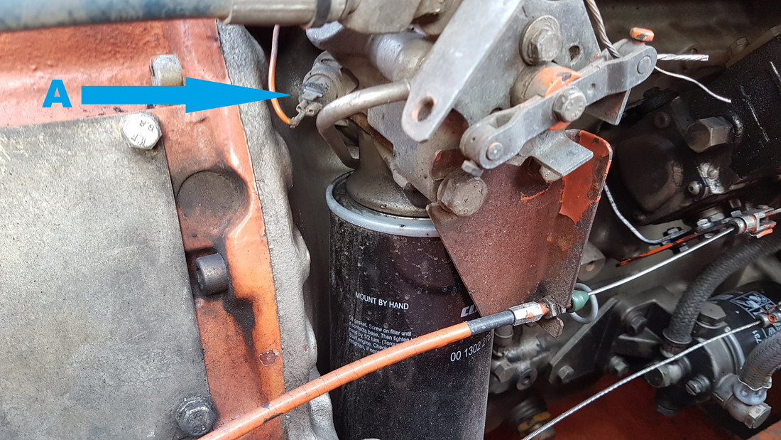 Leider funktioniert die so wichtige Motoröltemperaturanzeige nicht mehr. Jetzt die Frage: Welches ist der Anschluss hierfür? Rechts vom Filter oder links vom Filter? Anschluss A oder B?