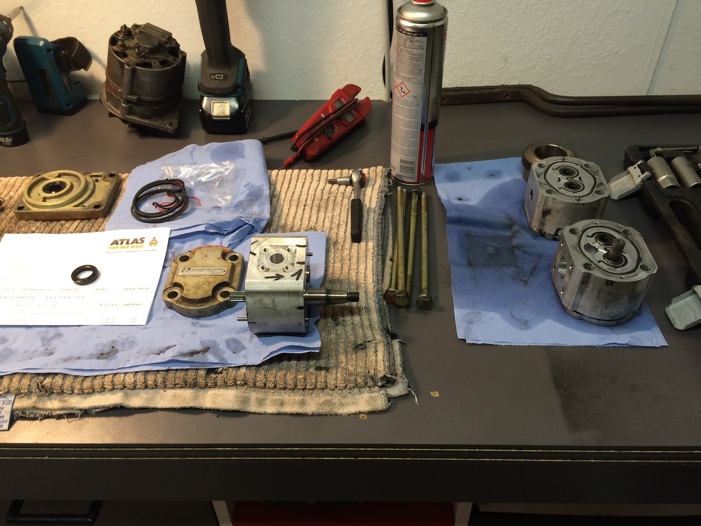 Dann habe ich noch die Pumpe zerlegt, neu abgedichtet und einen neuen Hydraulikölfilter eingebaut.